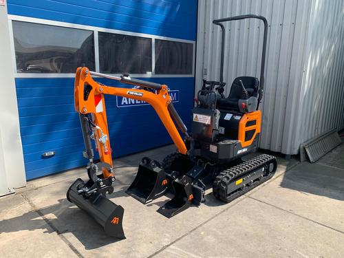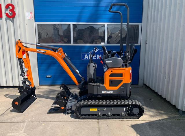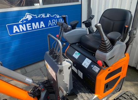 Uitvoering: Rupsbreedte 18cm, breedte 73cm, hydr. verstelbare onderwagen naar breedte 110cm, schuifblad 73-110cm, servo-bediening, extra hydr. functie, valbeugel. Op te bouwen met mech. of hydr. snelwissel CW00/05, 3 graafbakken.