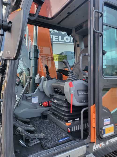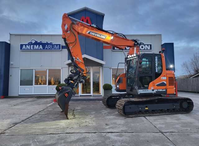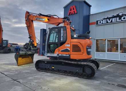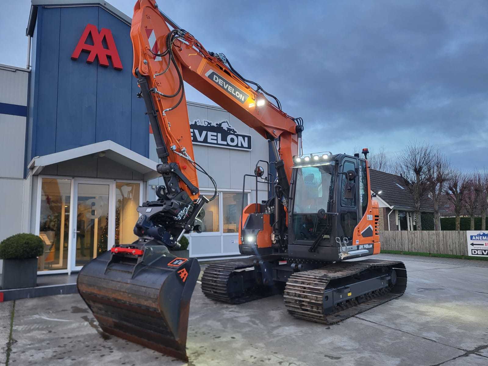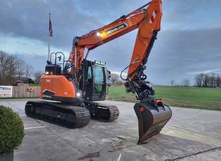 Eigen gewicht ±15900kg, hydr. verstelgiek, steel 250cm, rupsplaten 70cm, breedte 269cm, zwenkradius ballast 152cm, extra hydr. functies, Commonrail dieselmotor Doosan D34 4-cilinder 117Pk Stage V, ruime cabine met verstelbare stoel incl. verwarming en koeling, camera, DFM, extra LED-werkverlichting. Opgebouwd met hydr. snelwissel CW30, brede graafbak 850l-180cm, afneembaar draaikantelstuk SMP ST15 CW30/CW30 optioneel!