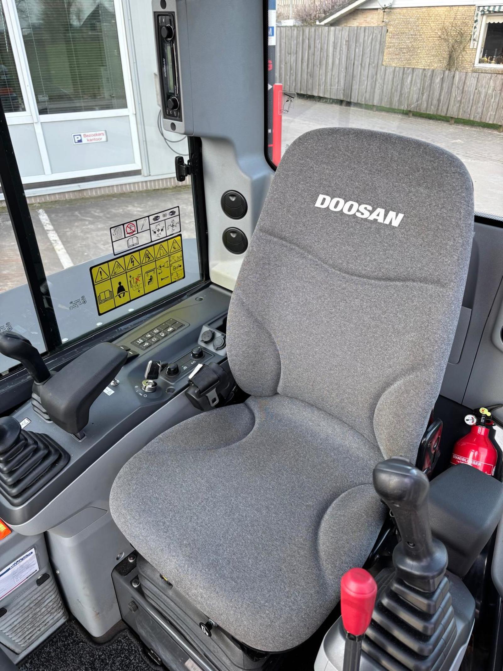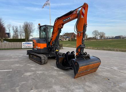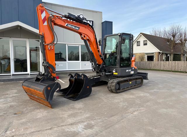 Eigen gewicht ±6218kg, Develon D24 dieselmotor 65Pk Tier/Stage V, monogiek 290cm, steel 190cm, rubbertrack 40cm, breedte machine 198cm, schuifblad incl. zweefstand, load sensing hydr. pomp max. 145l/min 275bar, hamer/rotatiefunctie proportioneel bediend, 8" smart touchscreen, LED-werklampen, zwaailamp, DAB+ radio bluetooth & handsfree, airco, DoosanConnect.