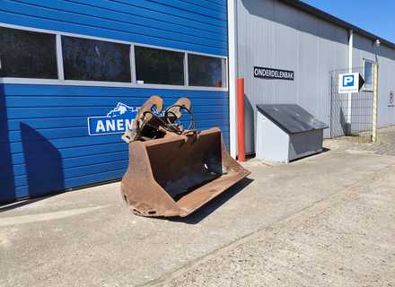Grote wisselende voorraad uitrustingsstukken en aanbouwdelen voor graafmachine, minigraver en shovel! Zoals; brede graafbak, smalle bak, bananebak, dieplepelbak, puinbak, puinriek, baggerbak, slotenbak, sleuvenbak, kettinggraafbak, kettingbak, sorteergrijpers, stenenklem, betonvergruizer, zeefbak. Vraag vrijblijvend een offerte bij ons aan, via email verkoop@anemabv.nl, whatsapp 0613937163 of bellen naar 0517-641329, keuze nr. 4.