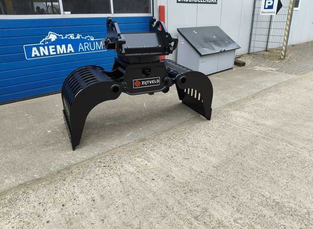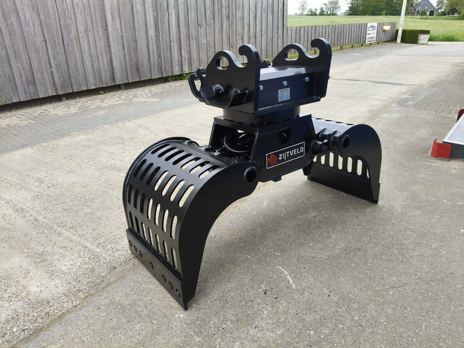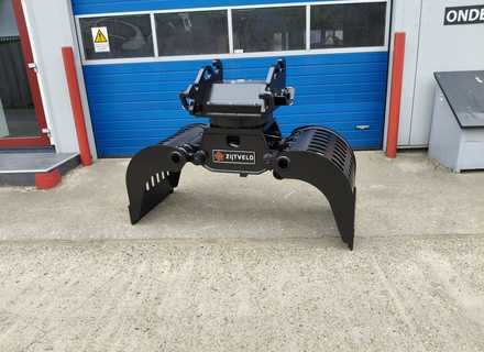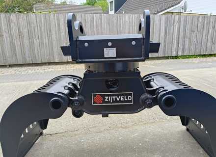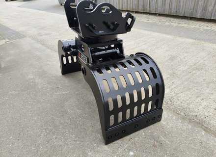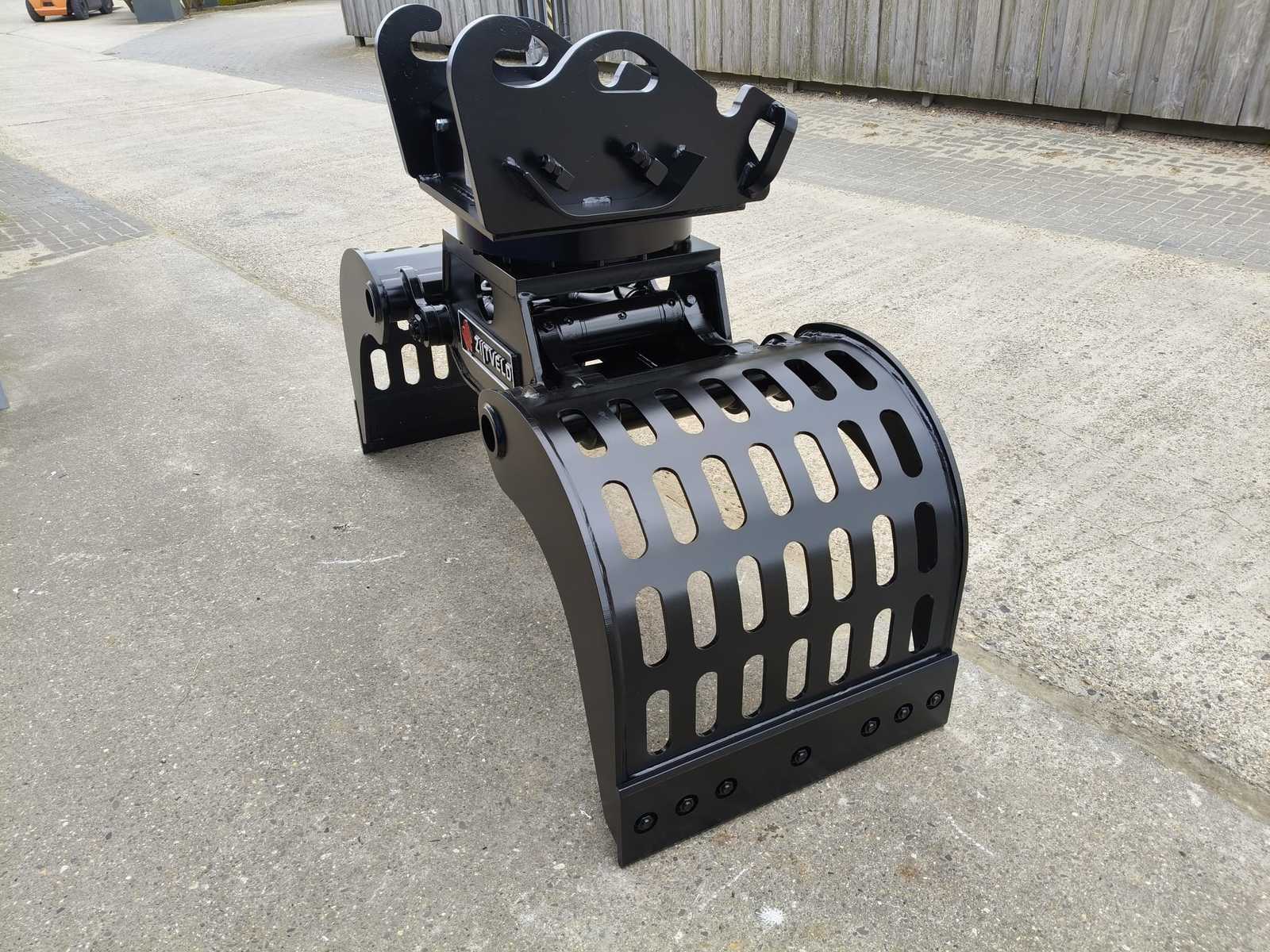 Eigen gewicht ±1000kg, machineklasse 12-20ton, ophanging CW30/40, hydr. rotatie, schaalbreedte 80cm, spreidopening 195cm, inhoud 500ltr. Incl. wisselmessen, slangen en koppelingen.