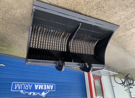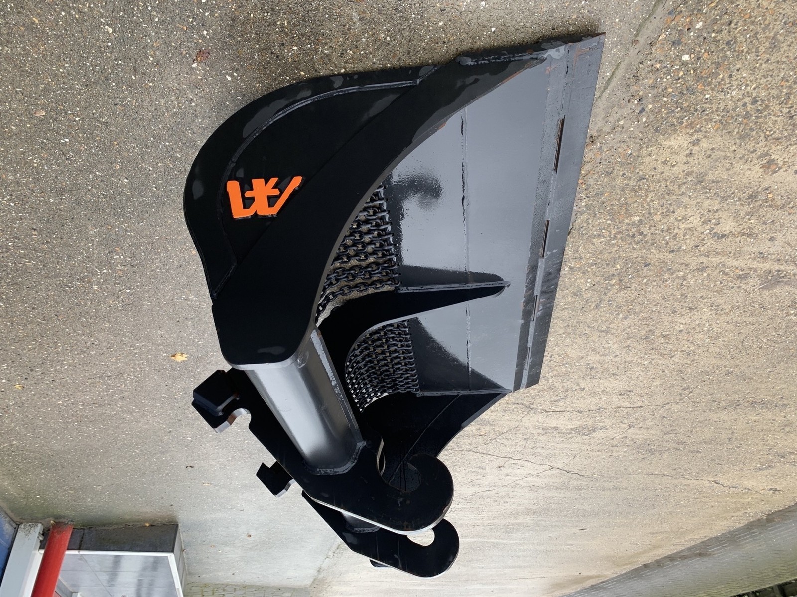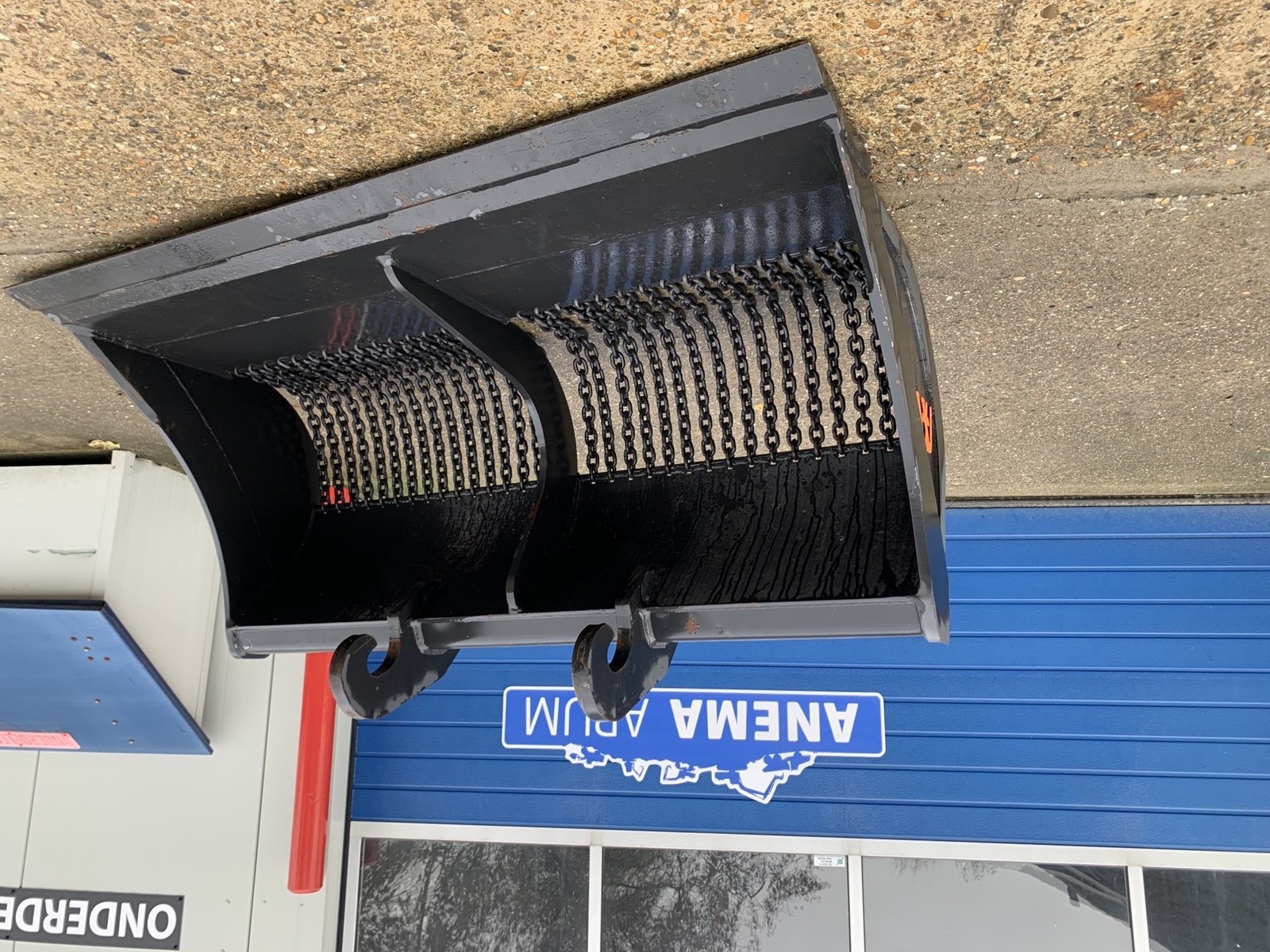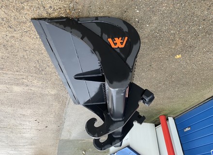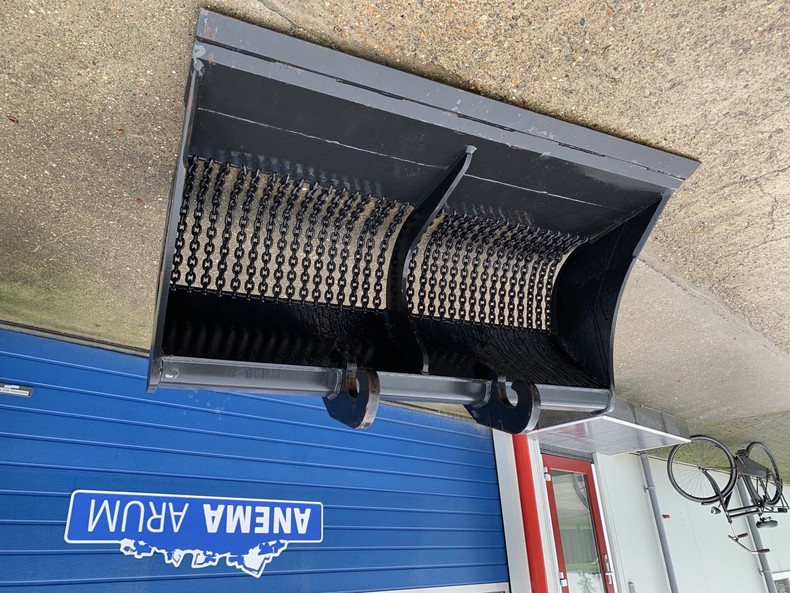 Eigen gewicht ±470kg, breedte 180cm, inhoud ±900ltr. 1:1, met gehard hijsketting, machineklasse 12-16ton, voorzetmes, ophanging CW30. Ook te huur!