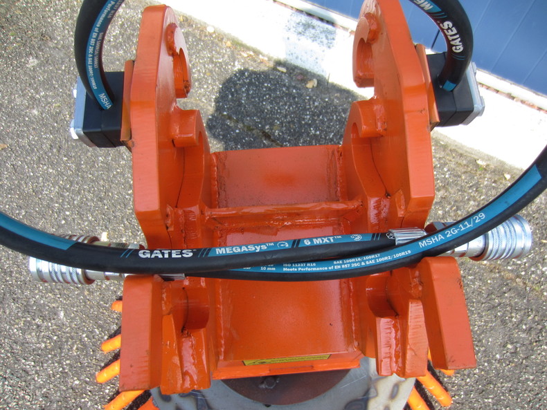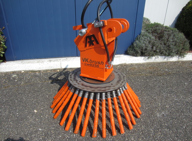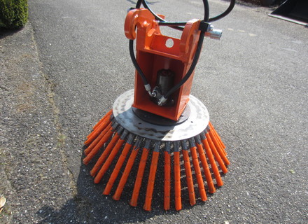 Hydraulisch aangedreven onkruidborstel voor aan minigraver graafmachine, breedte (diam) 80cm, hoogte 75cm, ophanging CW05(CW00), klasse 2-4ton, hydr. motor 250cc, inclusief slangen en koppelingen.