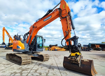 Eigen gewicht ±24900kg, monogiek 570cm, steel 290cm, rupsplaten 90cm, breedte 329cm, zwenkradius ballast 168cm, hamer/rotatiefunctie, Doosan 6-cilinder Commonrail dieselmotor DL06p van 166Pk Tier IV, ruime cabine met verstelbare stoel incl. verwarming, camera, extra LED-werkverlichting, DoosanConnect. Opgebouwd met draaikantelstuk Engcon EC226 CW40 incl. gripper, brede graafbak, hamer/rotatiefunctie, automatische centrale vetsmering Groeneveld, hoogtebegrenzing, overdrukcabine Freshfilter, kettingkist op onderwagen.