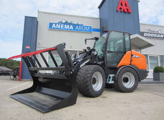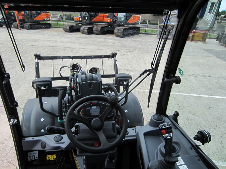 Eigen gewicht ±5100kg, Kubota dieselmotor 4-cilinder 75Pk Stage V, P-hefframe, hydrostaat 4-wielaandrijving 100% diff. lock, rijsnelheid 0-35km/h, hydr. snelwissel (Volvo L30, brede dichte bak 810ltr, extra hydr. functie, hefcapaciteit ±3100kg/tipload ±2867kg, hefhoogte 285cm, brede banden 500/45R22.5, luxe cabine. Diverse opties en uitrustingstukken mogelijk, vraag ons vrijblijvend naar een offerte.