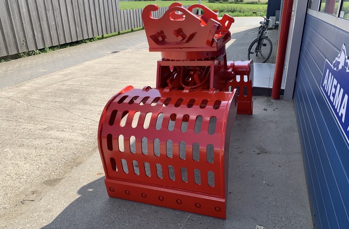Eigen gewicht ±1500kg, machineklasse 17-28ton, ophanging CW40, hydr. rotatie, schaalbreedte 100cm, spreidopening 210cm, inhoud ±800ltr. Incl. wisselmessen, slangen en koppelingen.