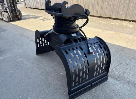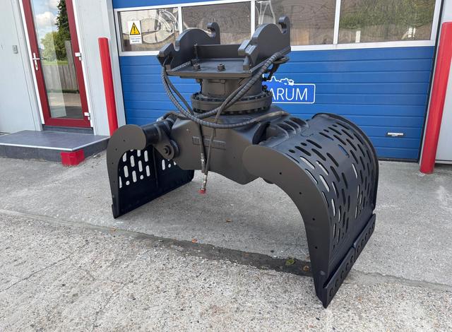 Eigen gewicht ±1228kg, machineklasse 20-25ton, ophanging CW40, hydr. rotatie, schaalbreedte 100cm, spreidopening 210cm, inhoud 750ltr. Incl. wisselmessen, slangen en koppelingen.