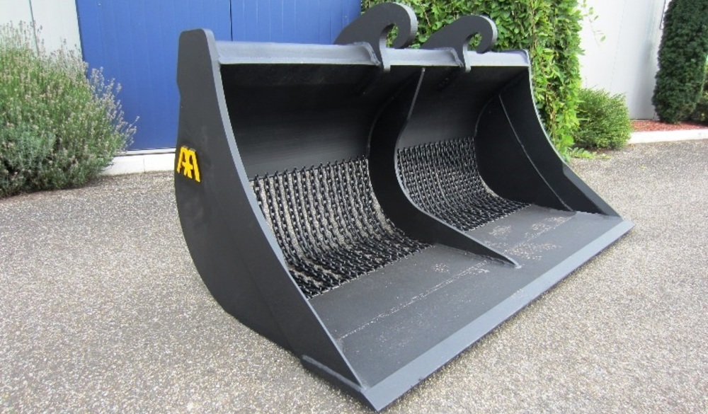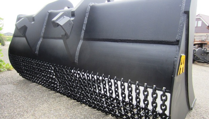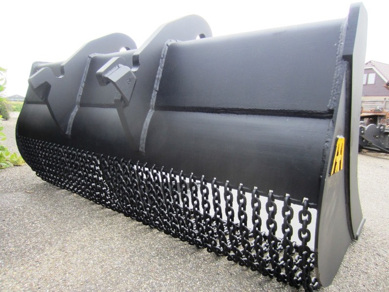 Eigen gewicht ±800kg, breedte 210cm, inhoud ±1500ltr. 1:1, met gehard hijsketting, machineklasse 20-25ton, ophanging CW40. Incl. voorzetmes. Ook te huur!