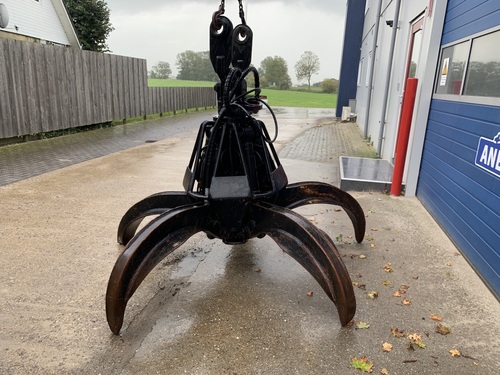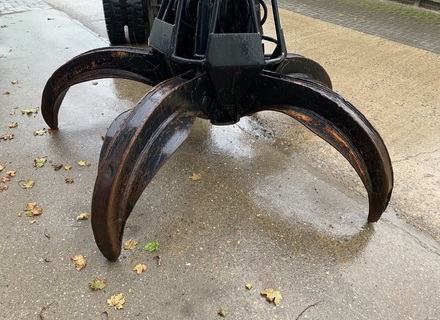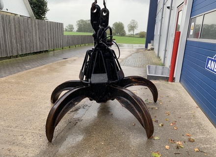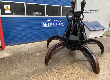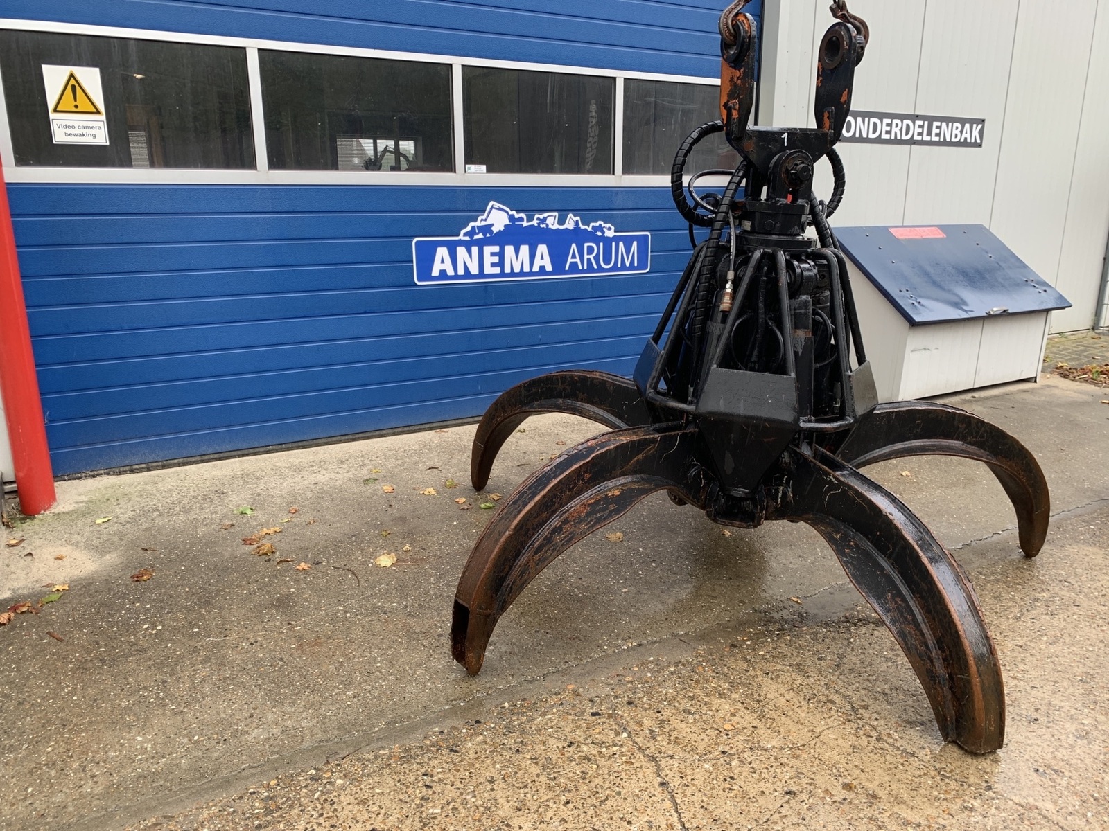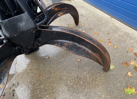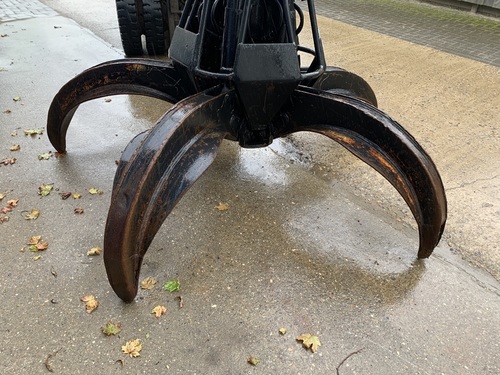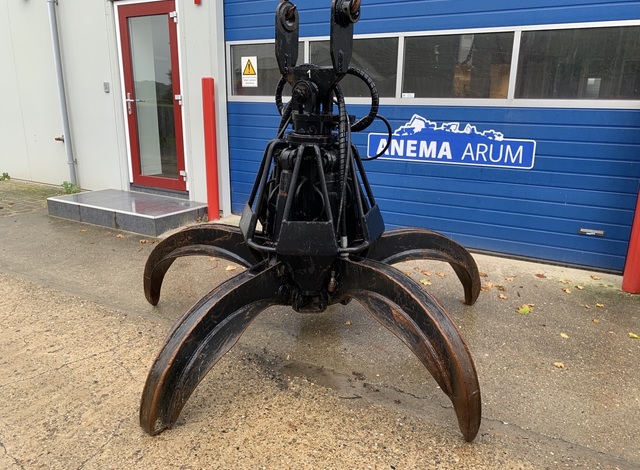 Half gesloten schalen, eigen gewicht 1120kg, inhoud 400L, Thumm draaikop, goed sluitend, vaste vork.