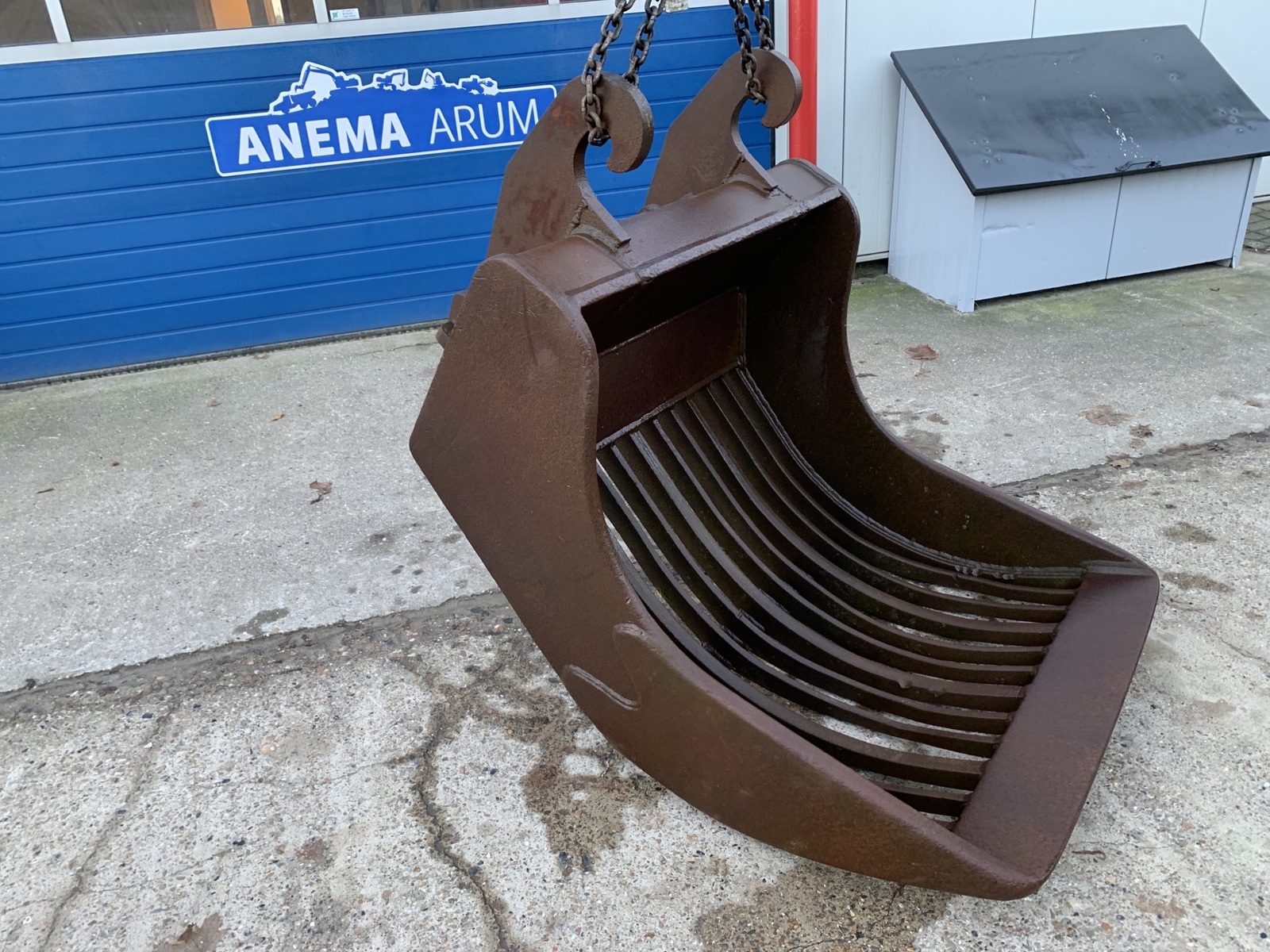 Grote wisselende voorraad uitrustingsstukken en aanbouwdelen! Zoals; brede graafbak, smalle bak, bananebak, dieplepelbak, puinbak, puinriek, baggerbak, slotenbak, sleuvenbak, kettinggraafbak, kettingbak, sorteergrijpers, stenenklem, betonvergruizer, zeefbak. Vraag vrijblijvend een offerte bij ons aan, via email verkoop@anemabv.nl, whatsapp 0613937163 of bellen naar 0517-641329, keuze nr. 5.