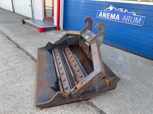 Grote wisselende voorraad uitrustingsstukken en aanbouwdelen! Zoals; brede graafbak, smalle bak, bananebak, dieplepelbak, puinbak, puinriek, baggerbak, slotenbak, sleuvenbak, kettinggraafbak, kettingbak, sorteergrijpers, stenenklem, betonvergruizer, zeefbak. Vraag vrijblijvend een offerte bij ons aan, via email verkoop@anemabv.nl, whatsapp 0613937163 of bellen naar 0517-641329, keuze nr. 5.