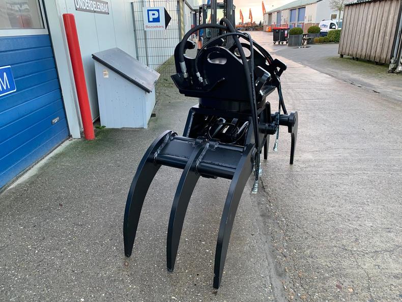 Gewicht ±1050kg, machineklasse 12-20ton, ophanging CW40, hydr. rotatie met 4 rotatiemotoren (standaard 2), met 7 tanden, spreidopening 205cm, incl. slangen en koppelingen.