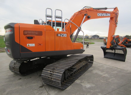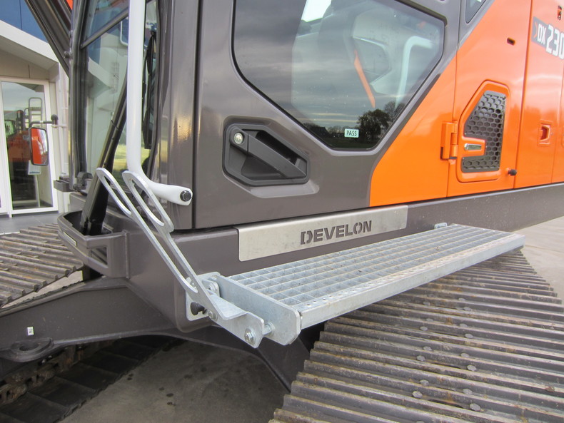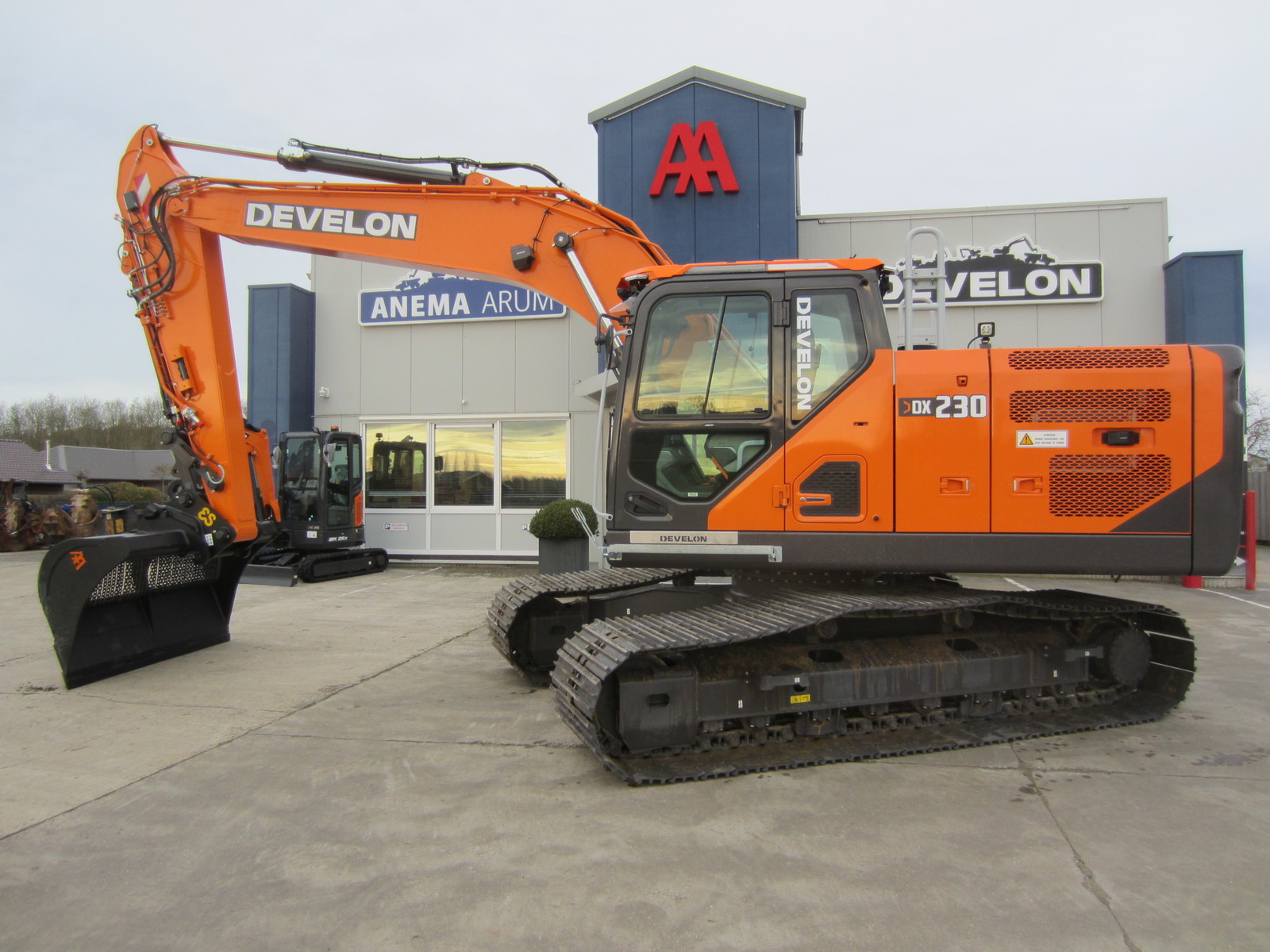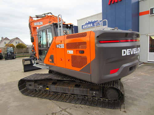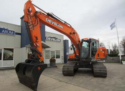 Uitvoering: Eigen gewicht ±23000kg, monogiek 570cm, steel 290cm, hamer/rotatiefunctie, snelwisselfunctie, brede rupsplaten 90cm, LED-werklampen, Develon DX05V 4-cil. commonrail dieselmotor Tier 4F/Stage V, cabine met instelbare & luchtgeveerde stoel incl. verwarming én koeling, climate control, DFM. Incl. opties af fabriek; smart key, Full smart package (2D Machine Guidance / Smart control /Virtual Walls + Weighing System +SAVM + HDS + Advanced lift assist) en opgebouwd met hydr. snelwissel CW40 en AA brede graafbak 210-1450ltr.