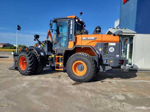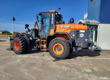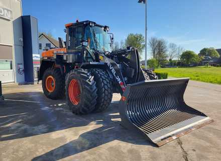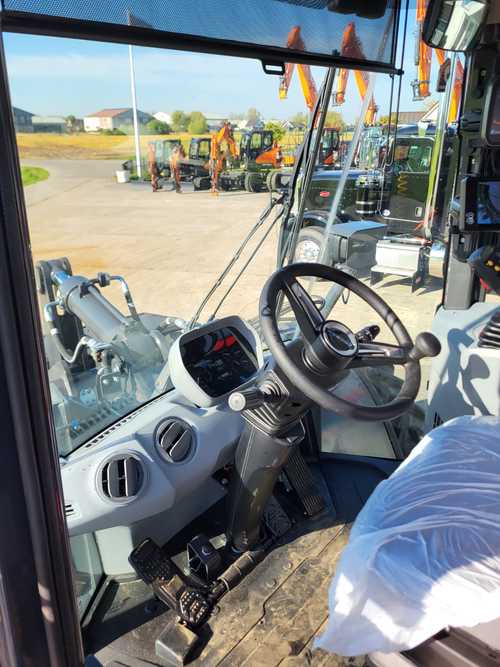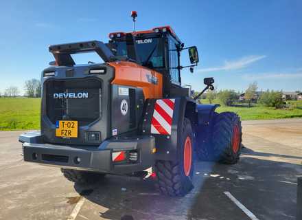 Nieuw design! Eigen gewicht ±13140kg, Develon 6-cilinder commonrail dieselmotor Tier/Stage V, vermogen 119kW, koppel 736Nm/1400tpm, LIS, 5-traps powershift automaat met automatische lock-up, rij-snelheid ±38km/h-achteruit ±25km/h, derde hydr. functie. Nieuwe luxe cabine met slim bedieningspaneel, 8" touchscreen, meer zicht, joystick (E-MCV), SmartKey, LED-werklampen, power-management SAT2, camera, airco, DAB+ radio & bluetooth, Develon Fleet Management.