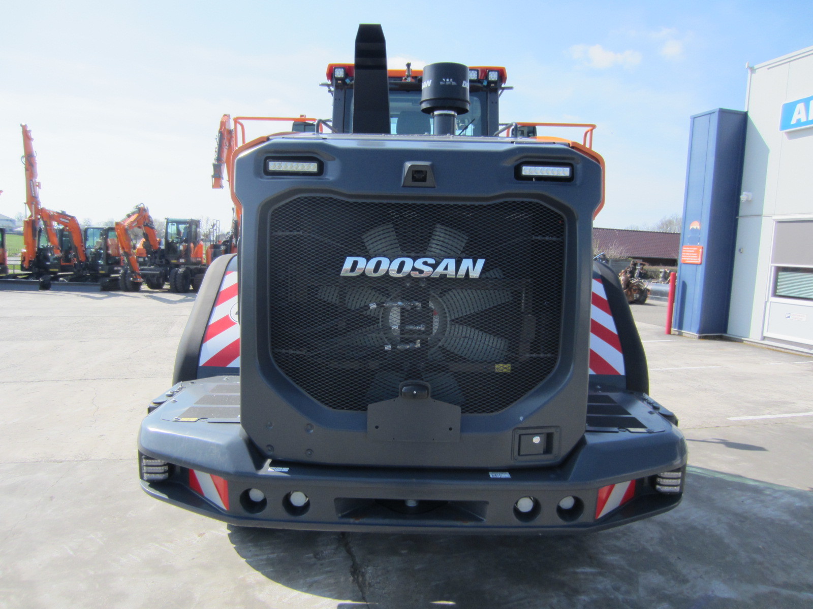 Nieuw design! Eigen gewicht ±20600kg, Doosan 6-cilinder commonrail dieselmotor Tier/Stage V, vermogen 202kW, koppel 1275Nm/1300tpm, LIS, 5-traps powershift automaat met automatische lock-up, rij-snelheid ±40km/h-achteruit ±28km/h, brede dichte bak 3.5m3, derde hydr. functie, automatische vetsmering SKF. Nieuwe luxe cabine met slim bedieningspaneel, 8" touchscreen, meer zicht, joystick (E-MCV) of 3-hendel bediening, SmartKey, LED-werklampen, power-management SAT2, 360gr camera, airco, DAB+ radio & bluetooth, DoosanConnect. hydr. snelwissel ISO (Volvo-systeem), brede dichte bak. Vraag ons naar de mogelijkheden voor een (gratis) demonstratie.