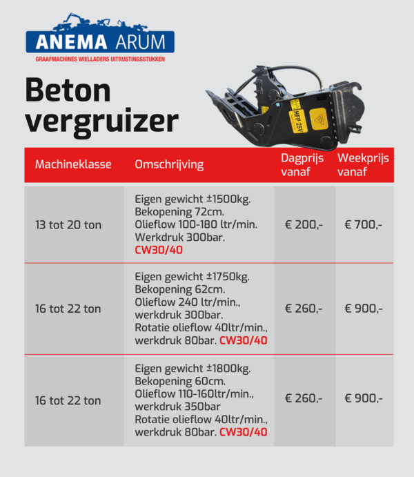 Wilt u een beton vergruizer huren in Friesland? Bij Anema Arum bent u aan het juiste adres!