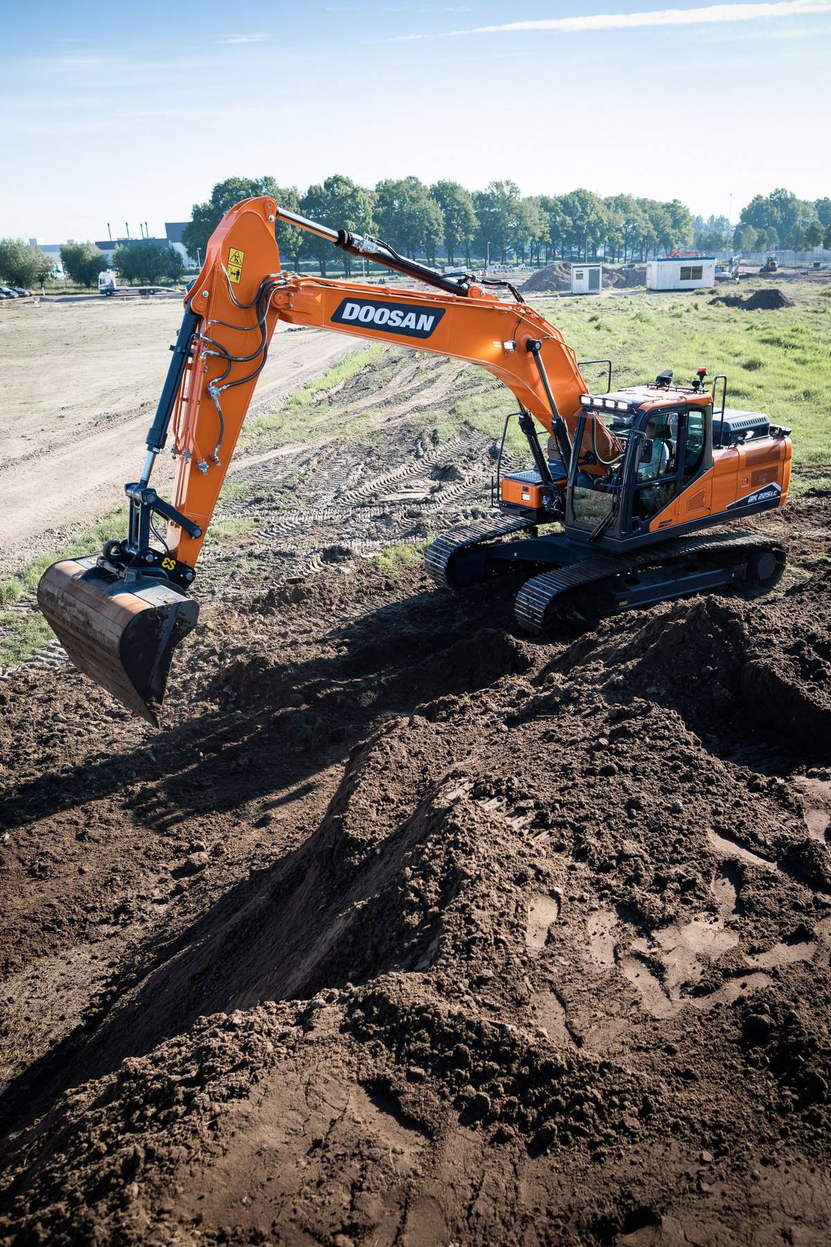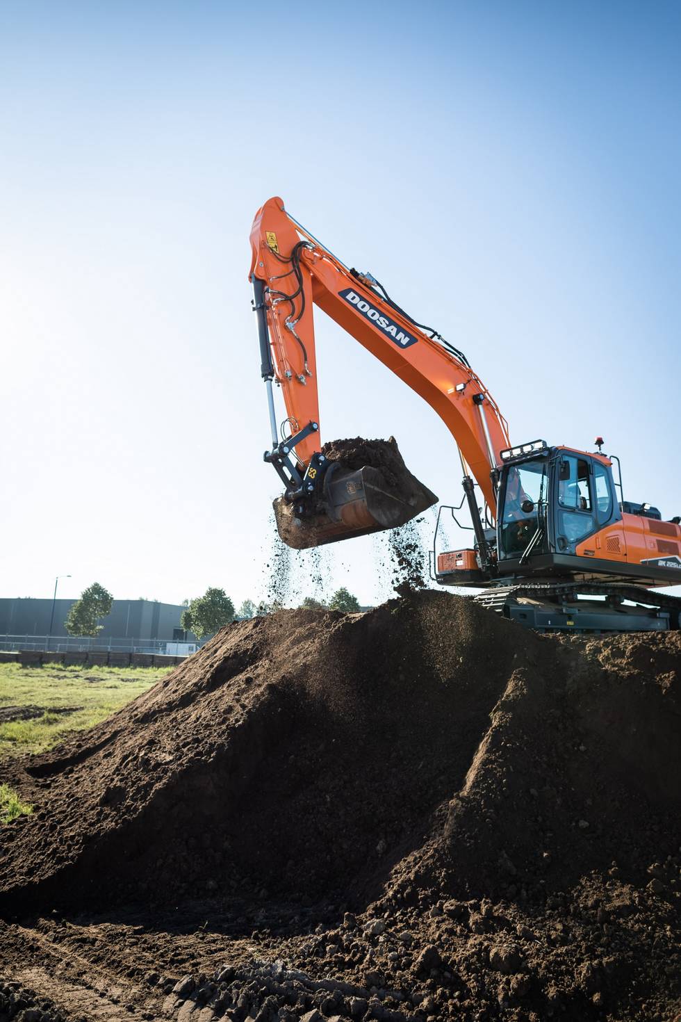 De machine wordt aangedreven door de nieuwste generatie Doosan DL06V-dieselmotor, die 129 kW (174 pk) levert bij 1800 tpm. De DL06V-motor biedt een nieuwe oplossing om de Stage V-voorschriften te overtreffen zonder uitlaatgasrecirculatie, die de hoeveelheid beschikbare lucht tijdens de verbranding verhoogt.