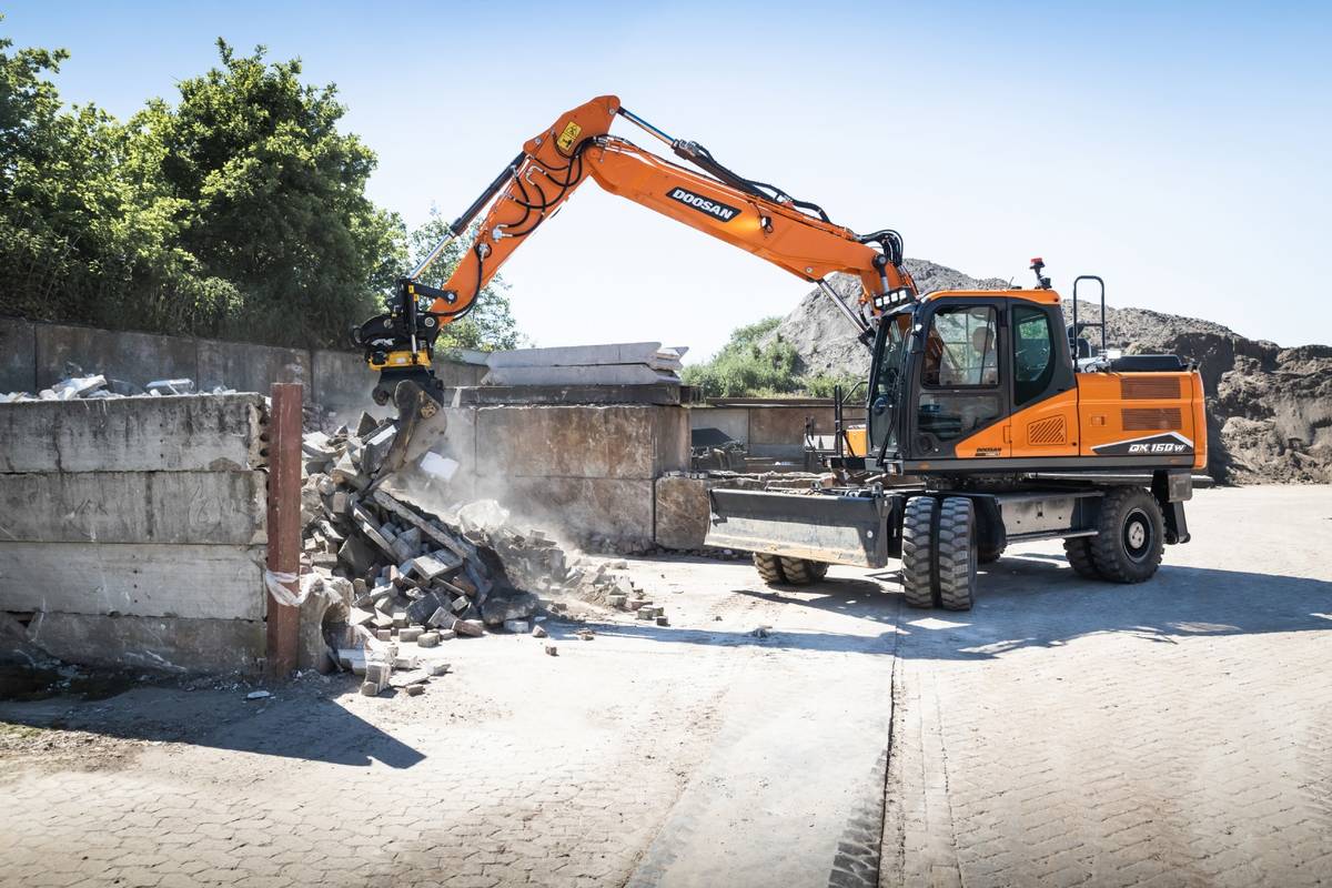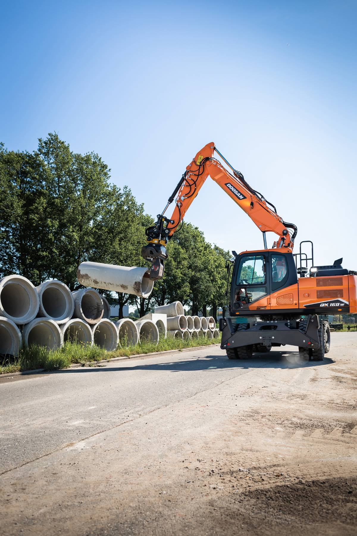 De Doosan DX140W-7 en de DX160W-7 bieden een verbeterde frontbeweging voor roterende gereedschappen. Daardoor is het werkbereik ook verbeterd. Daarnaast is de slag van de knik armcilinder vergroot terwijl de locatie van de cilinder hetzelfde blijft. Bovenop de giekcilinder is nu een sluisklep toegevoegd, om te voorkomen dat de knik armcilinder onverwachts vrijkomt bij het graven.