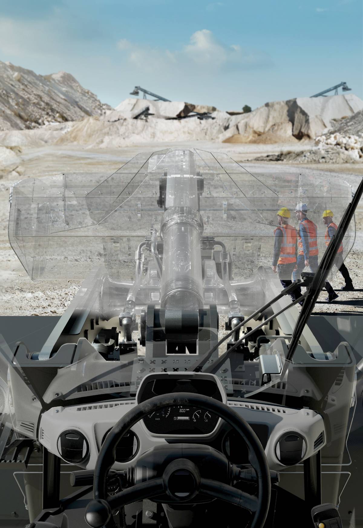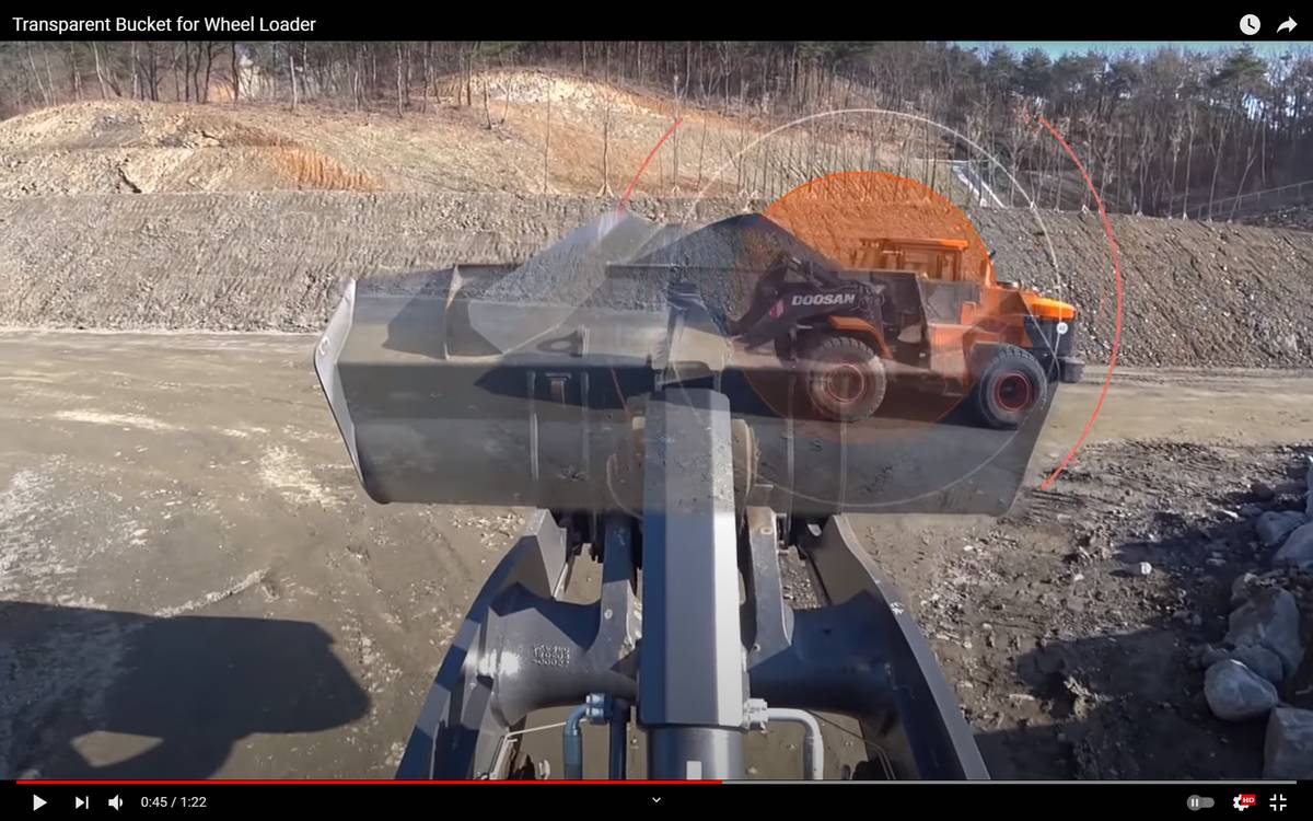 Vanwege de dode hoeken die worden veroorzaakt door de bak van de wielader, wordt het gebied voor de machine gezien als een gebied wat gevaarlijk is. Met de nieuwe Doosan transparante bakfunctie kan de machinist eenvoudig alles goed zien. Zo wordt de veiligheid vergroot en ongevallen voorkomen. Een ander voordeel is dat de werkefficiëntie aanzienlijk kan worden verbeterd doordat de machinist een vooruitziend perspectief te zien krijgt tijdens het laden, lossen of bij het vervoeren van materialen.