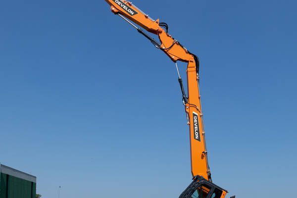 In de vaste 'mono' versie van de nieuwe DX140RDM-7 zorgt het indrukwekkende werkbereik ervoor dat de machine met sloopuitrusting tot een maximale hoogte van 16 meter kan werken. Het aanbevolen maximale gereedschapsgewicht in deze modus is 1450 kg. Net als de andere modellen in het assortiment sloopgraafmachines biedt de DX140RDM-7 een hoge zichtbaarheid en een kantelbare cabine, bijzonder geschikt voor sloopwerk op grote hoogte en met een kantelhoek van 30 graden.