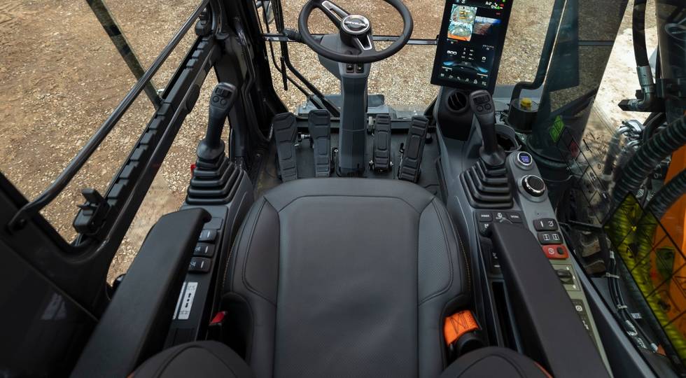 Er is ook een nieuwe Smart All-Around Viewing Monitor (SAVM)-optie, waarbij het bovenaanzicht altijd gelijktijdig wordt weergegeven bij het selecteren van de achter-, rechter- en rechterhoekweergave, conform de EN474-wetgeving. De term 'Smart' duidt op een verbeterde AVM-specificatie met extra persoonsdetectie voor extra veiligheid, boven op de bestaande AVM-optiespecificatie. De monitor maakt gebruik van beelden van vier camera's om werknemers op de locatie in de buurt van de machine te tonen.