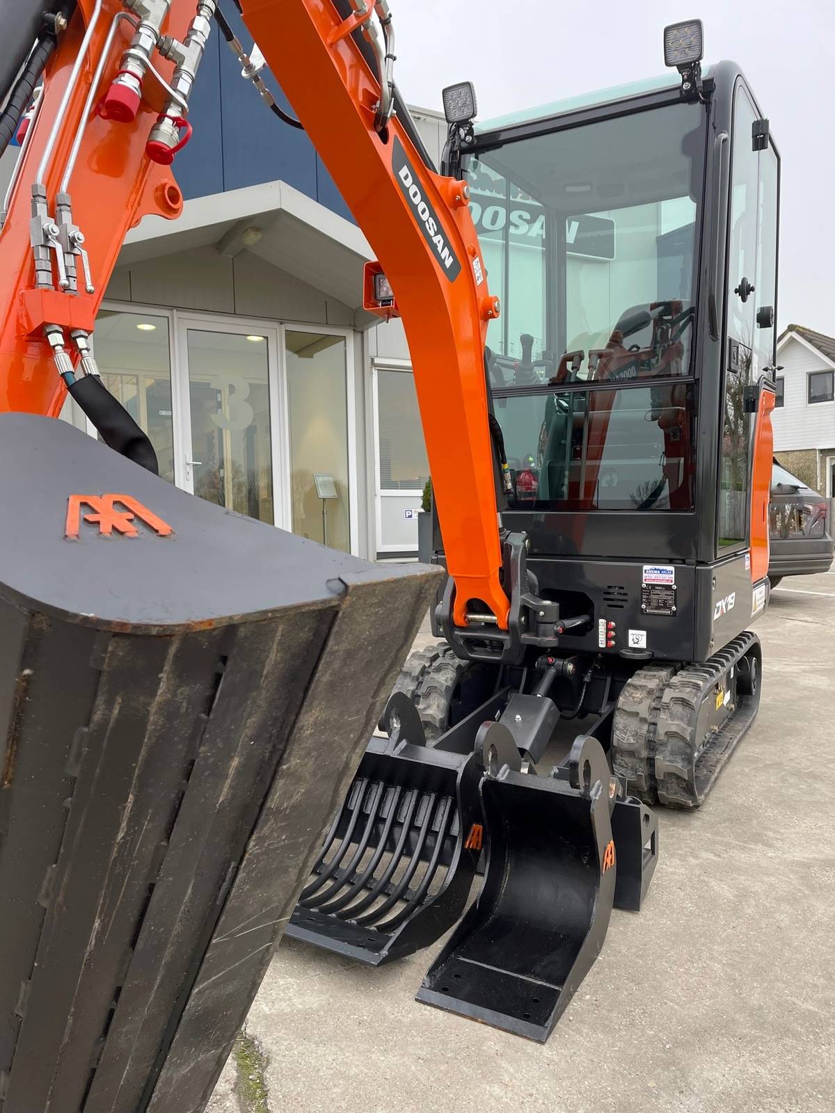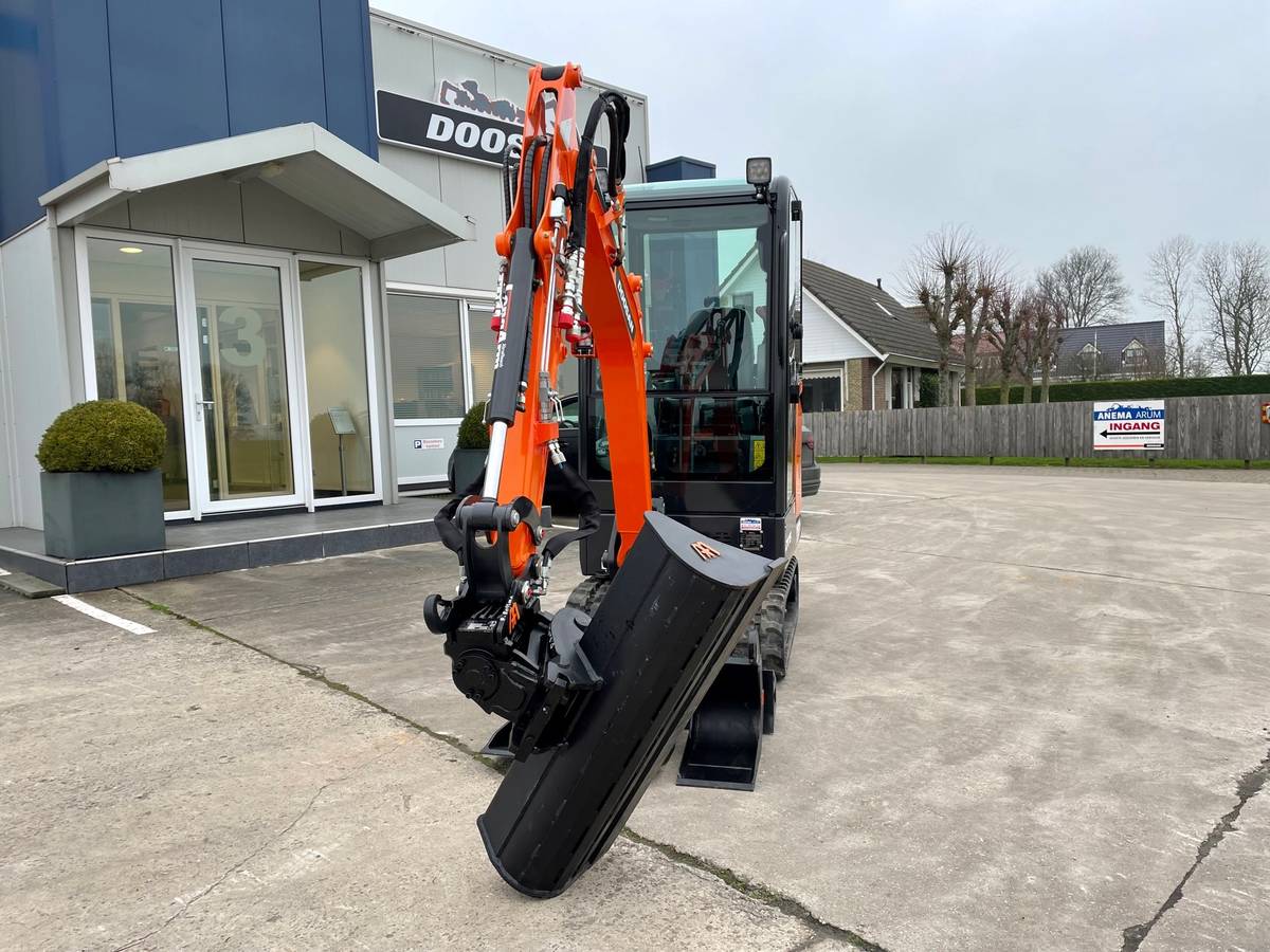 Het vertrouwen is ons gegund en met plezier leveren we dan ook deze nieuwe Doosan DX19 minigraver opgebouwd naar wens van de hovenier af met de volgende specificaties: