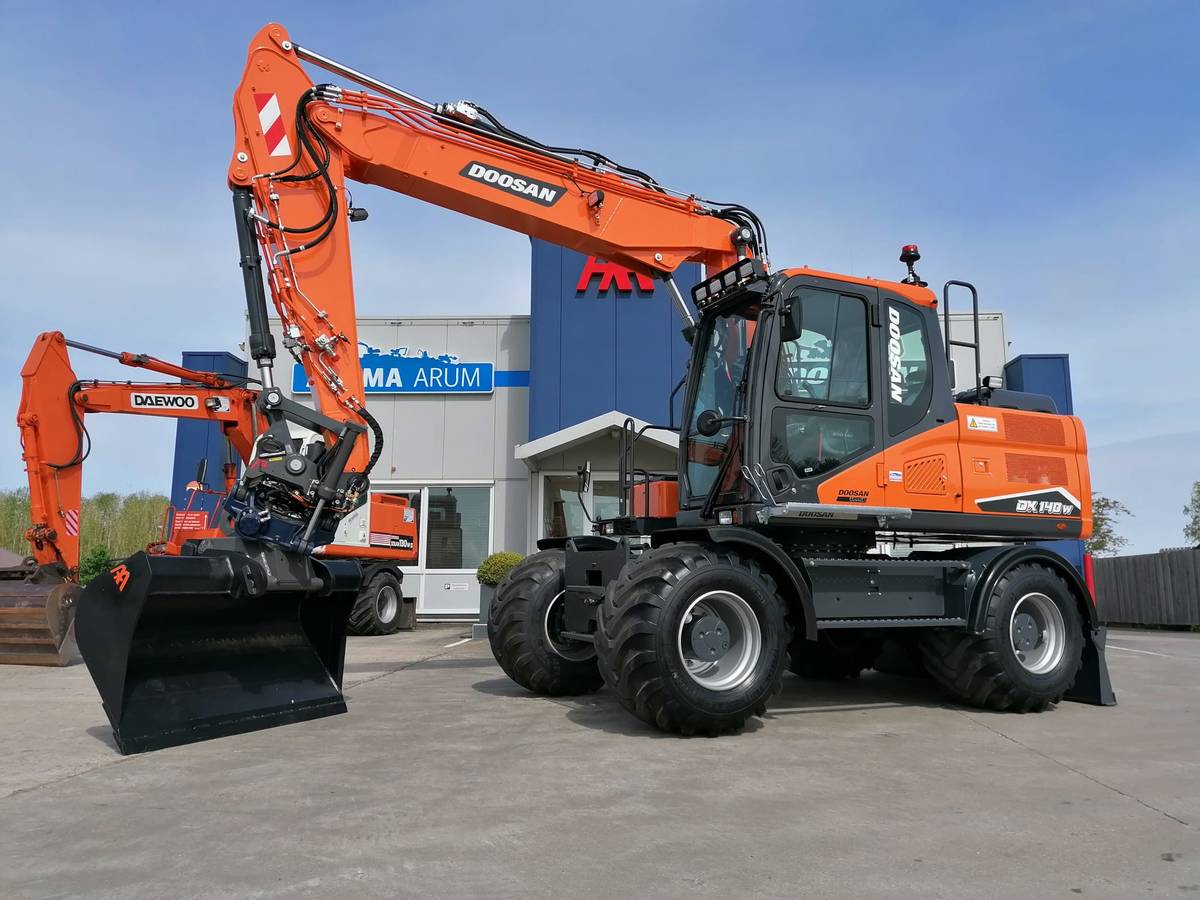 Voor het vernieuwen van het machinepark heeft Meilof onlangs een nieuwe Doosan DX140W-7 mobiele graafmachine in gebruik genomen, welke is uitgerust met een Doosan DL06 6-cilinder commonrail dieselmotor StageV en hiermee aan alle eisen voldoet. De nieuwe DX140W-7 vervangt een Doosan DX140W-3.