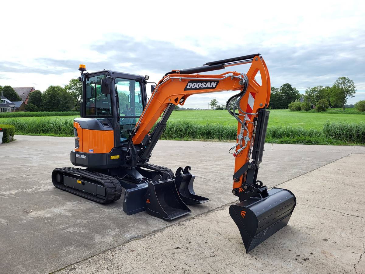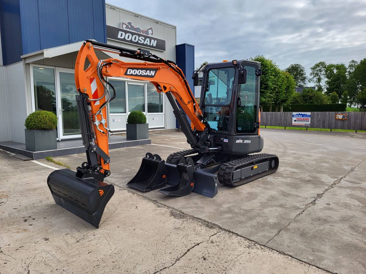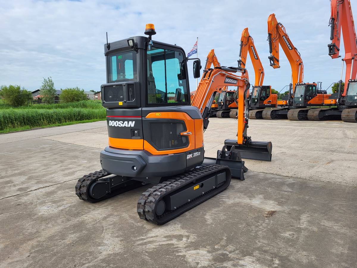Verno Materieelverhuur uit Leeuwarden heeft de primeur betreffende de levering van twee nieuwe Doosan DX35z-7 rechtstreeks van de Doosan fabriek uit Korea. De compacte graafmachines zijn van de nieuwste -7 serie generatie met een Doosan 3 cilinder dieselmotor StageV.