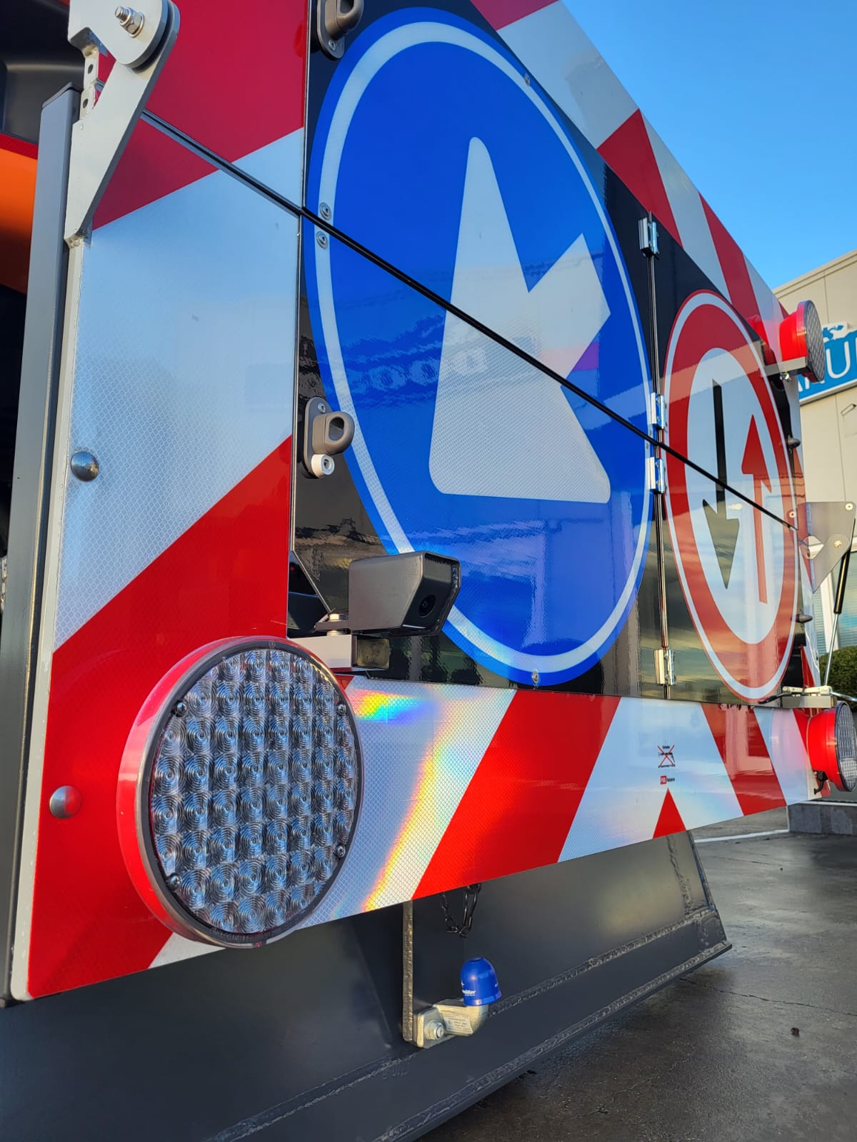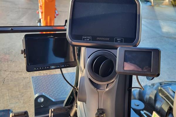 - zij- en achtercamera, twee camera´s op lepelsteel, achtercamera verplaatsbaar i.v.m. actiebord
