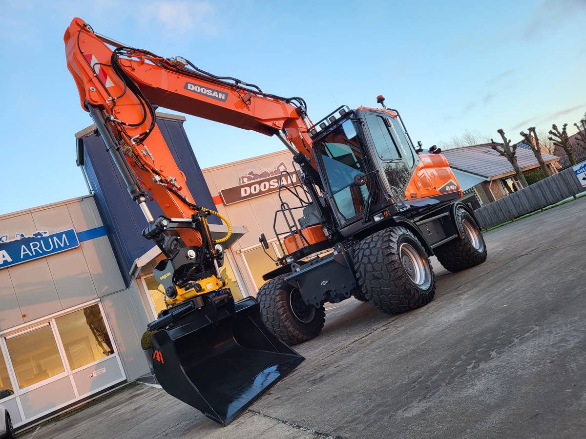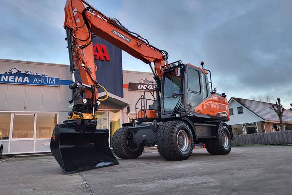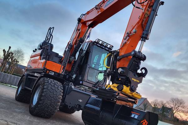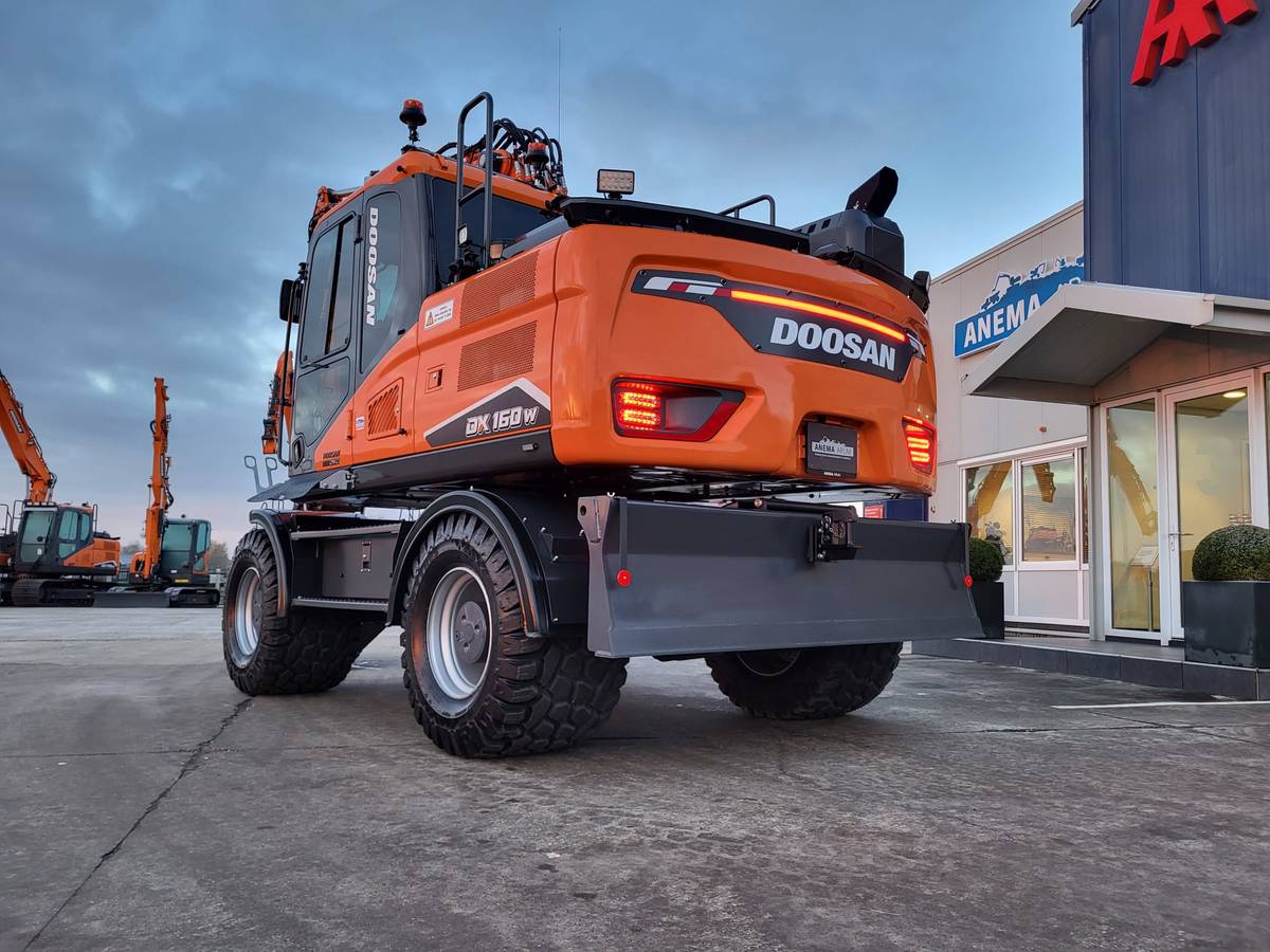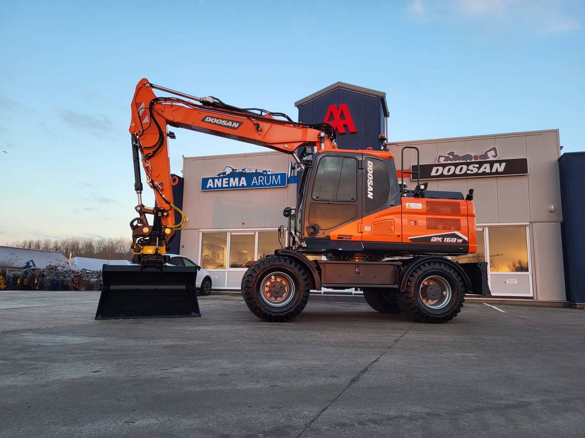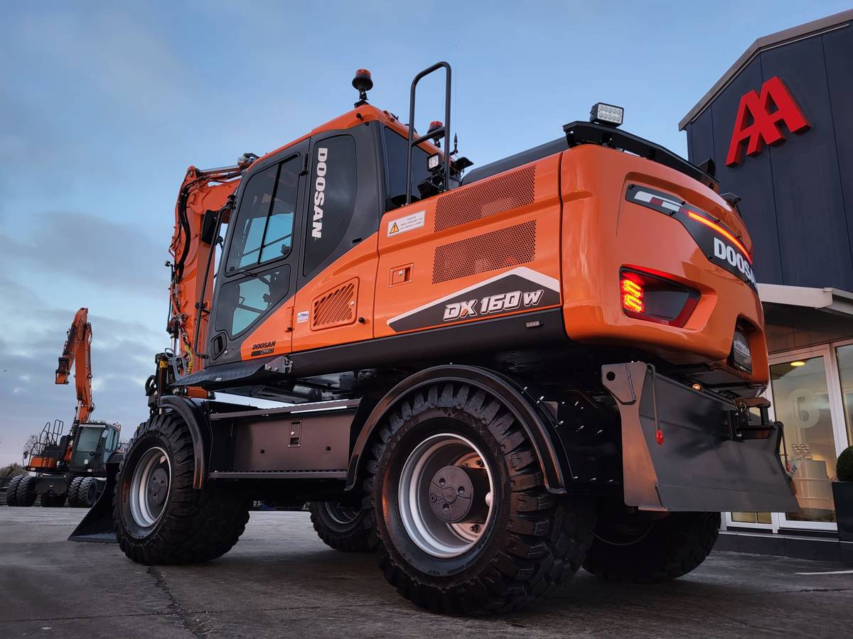Tijd voor verzwaring van het materieel met de aankoop van deze speciaal opgebouwde nieuwe Doosan DX160W-7 welke een Hitachi ZX140W-3 vervangt.