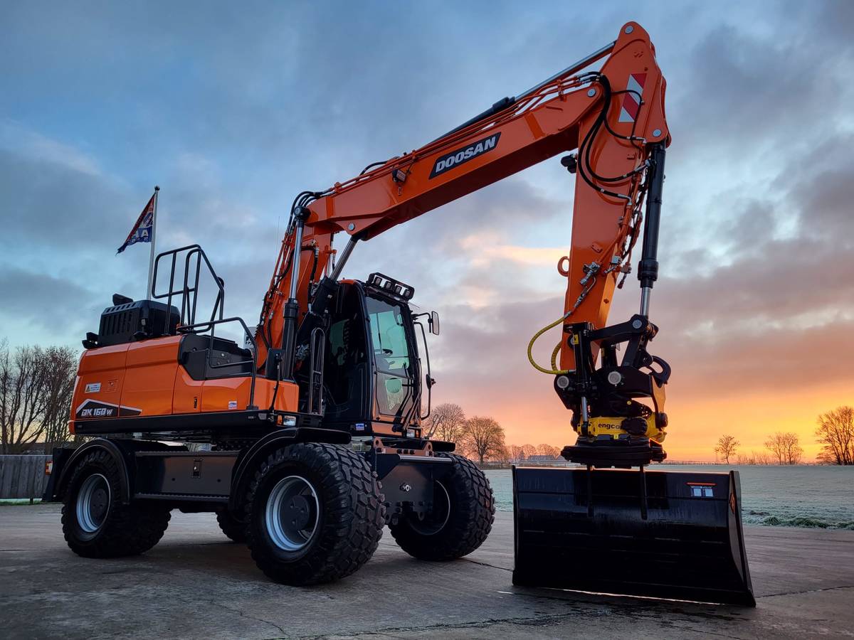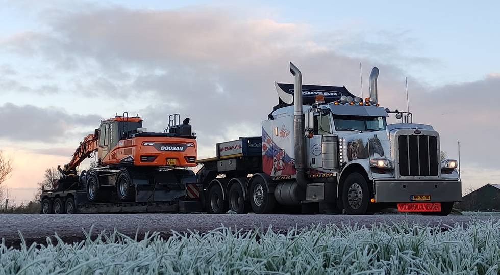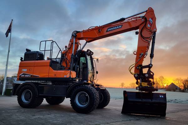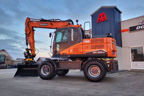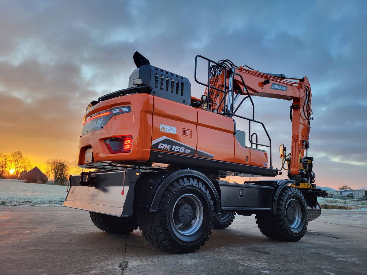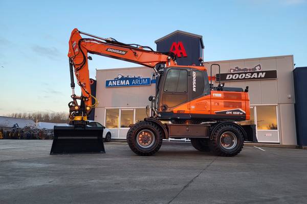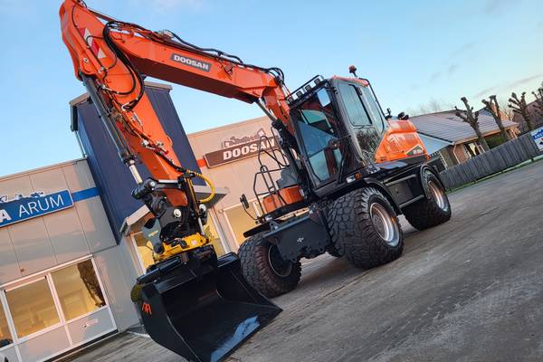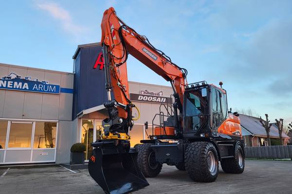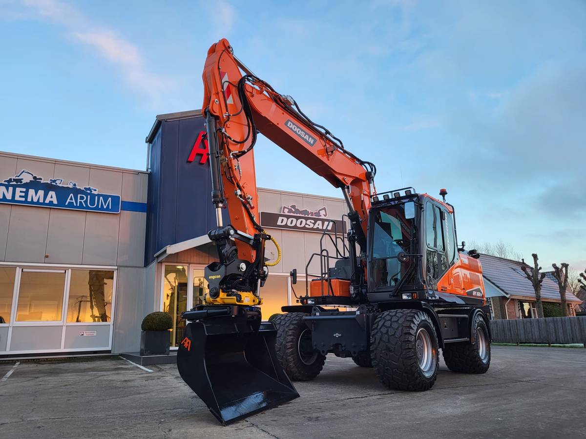 Tijd voor verzwaring van het materieel met de aankoop van deze speciaal opgebouwde nieuwe Doosan DX160W-7 welke een Hitachi ZX140W-3 vervangt.
