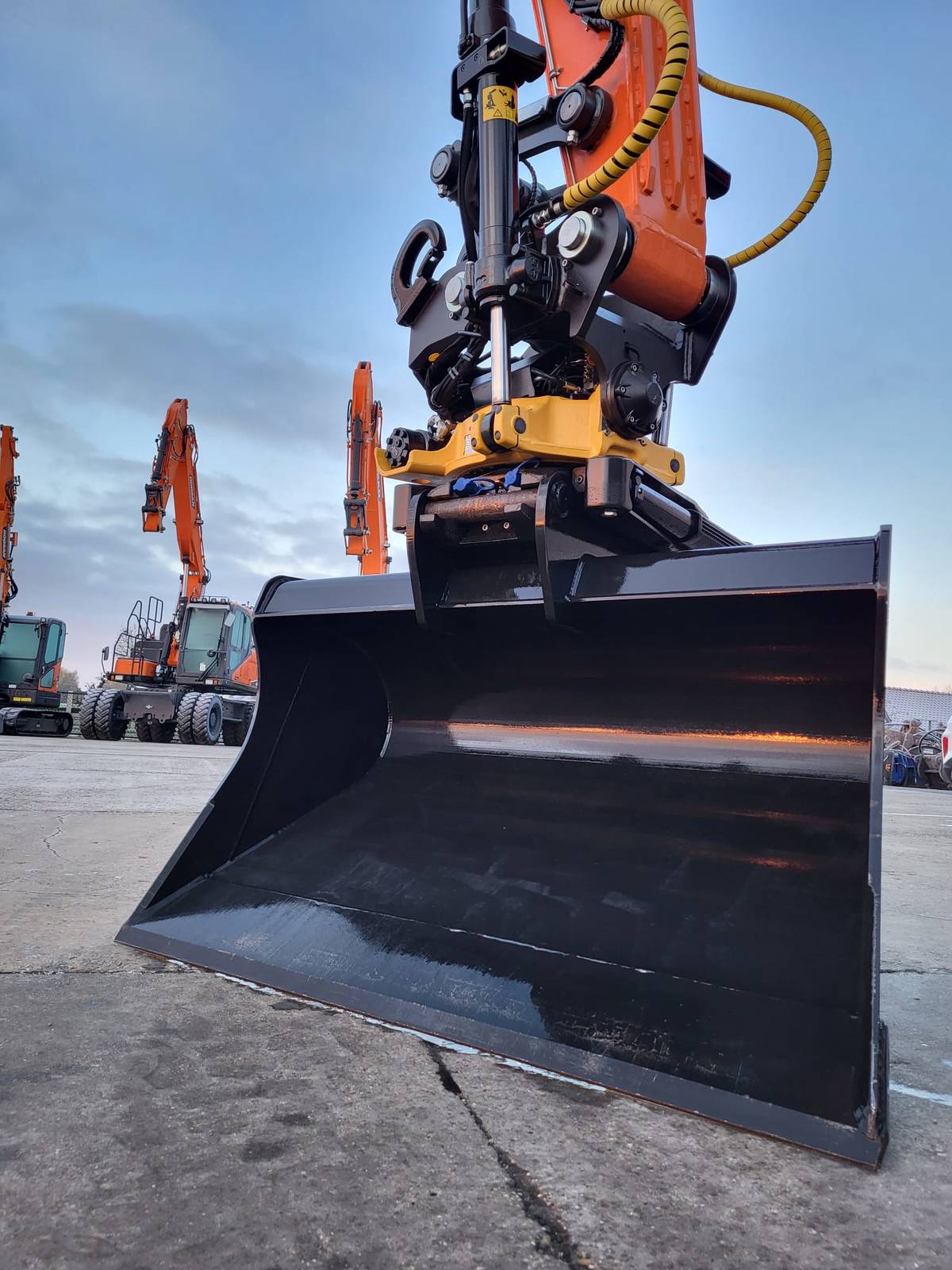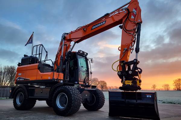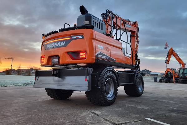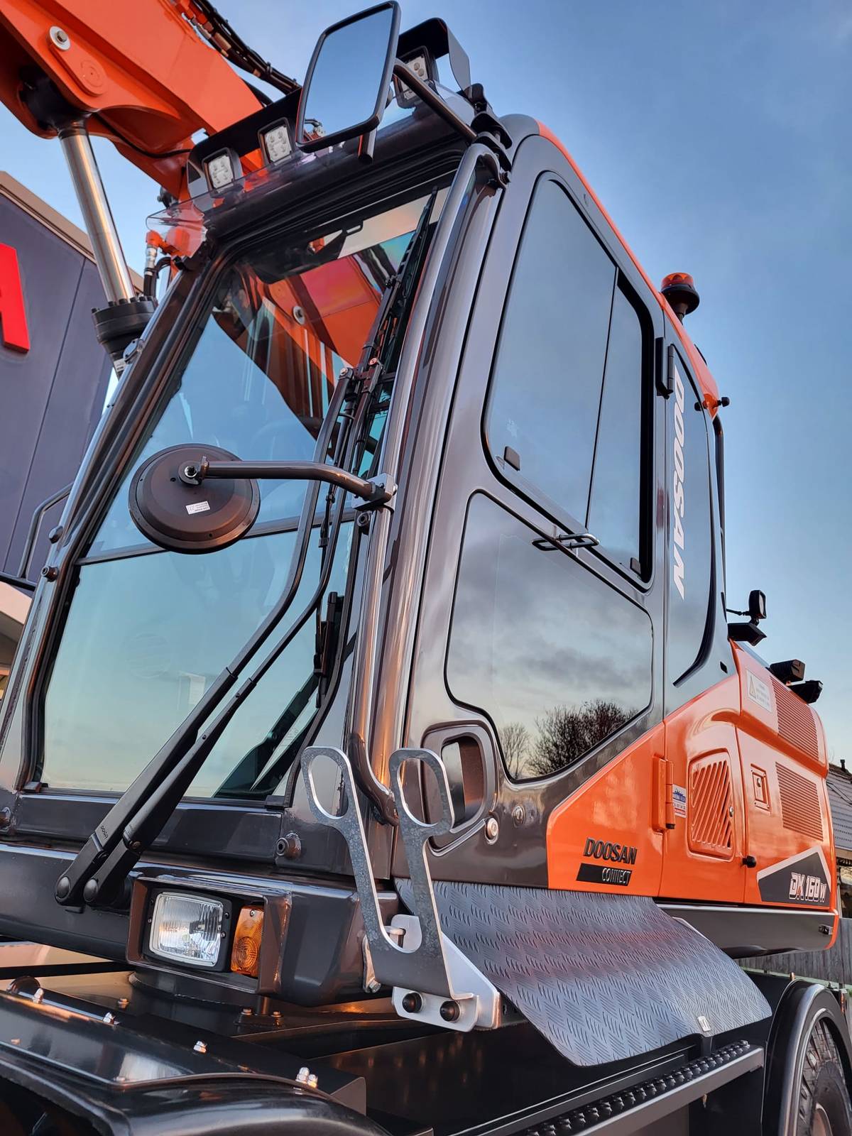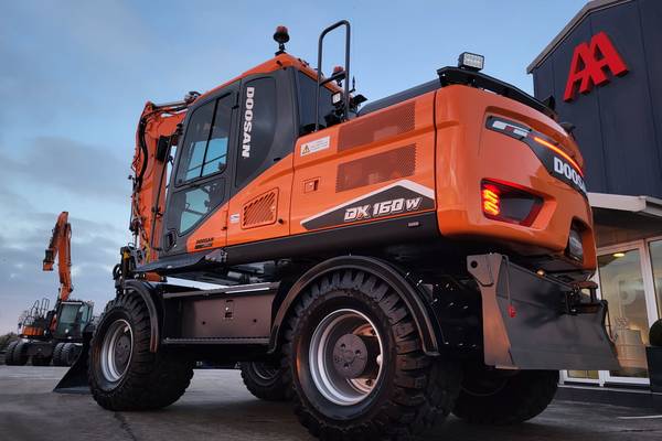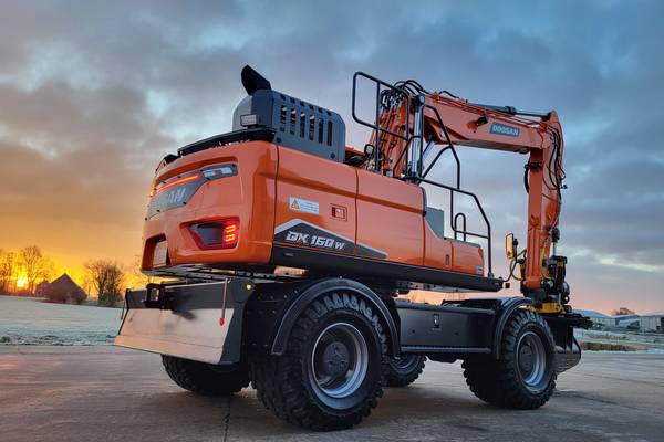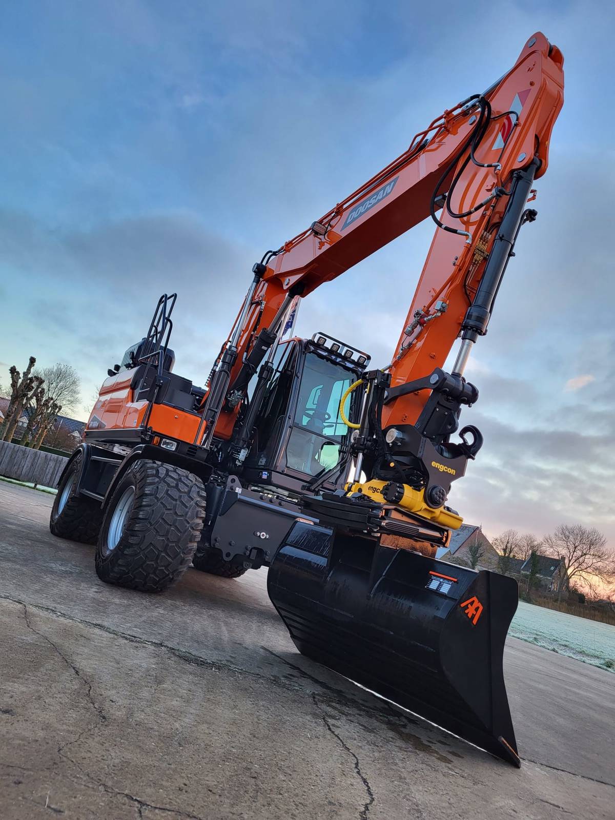 Tijd voor verzwaring van het materieel met de aankoop van deze speciaal opgebouwde nieuwe Doosan DX160W-7 welke een Hitachi ZX140W-3 vervangt.