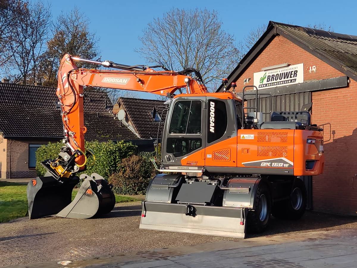 Brouwer verhuur- en grondverzet bedrijf beschikt over een compleet veiligheid gecertificeerd machinepark en heeft deze uitgebreid met een nieuwe Doosan DX160W-7 die met diverse opties is opgebouwd.