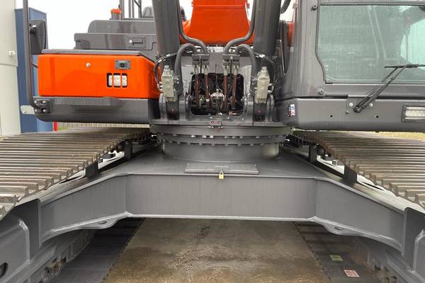 Na verbouw is het totale machinegewicht van deze Doosan DX300LC-7 incl. wissel ± 35000 kg en vervangt een Case CX300C uit 2012