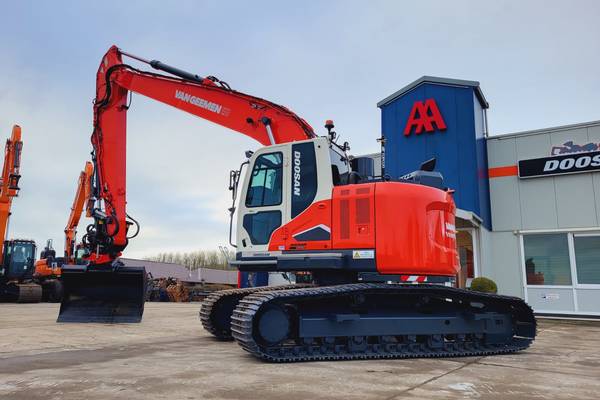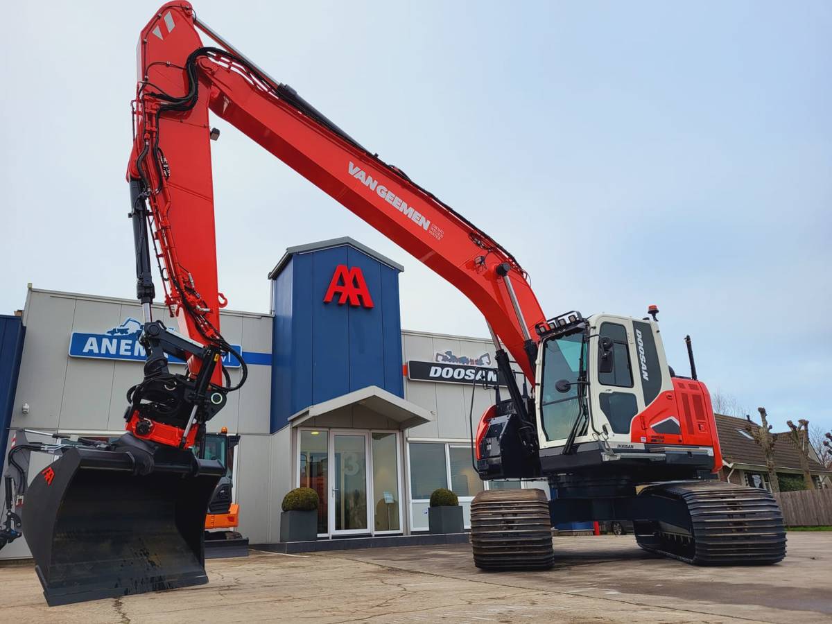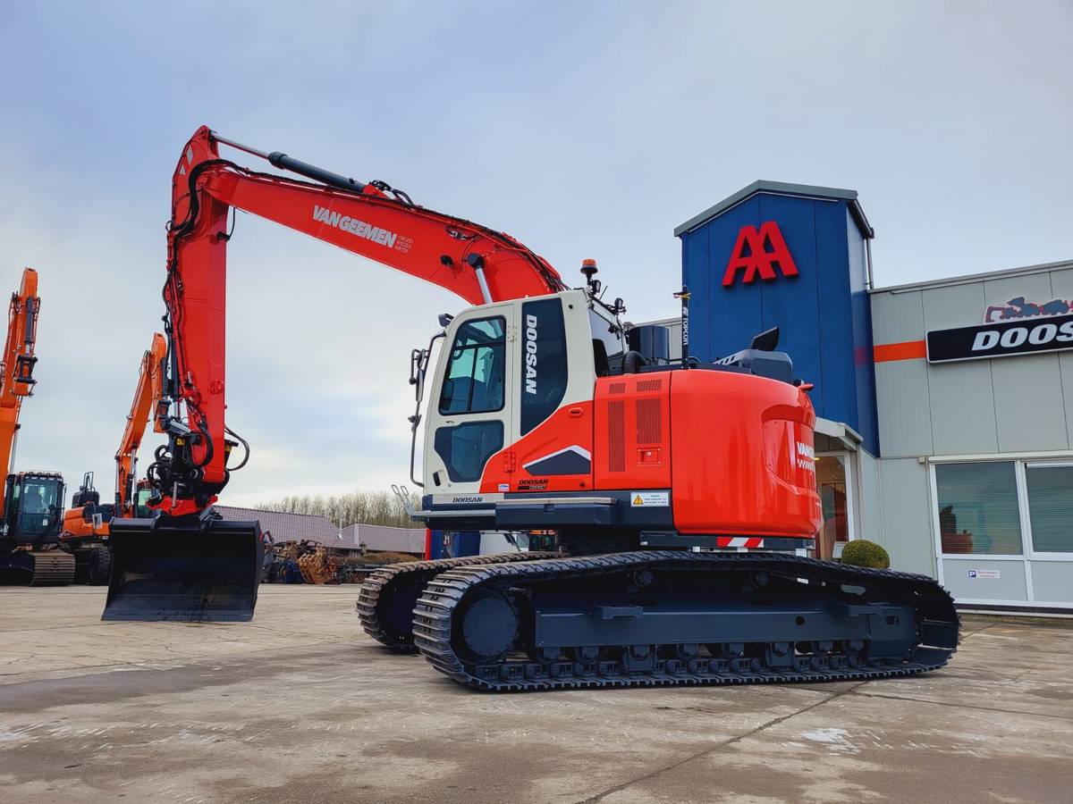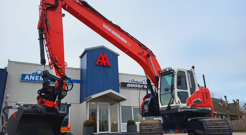 De nieuwe DX235LCR-7 is volledig in de bekende bedrijfskleuren van Van Geemen gespoten en vervangt een Doosan DX235LC-5.