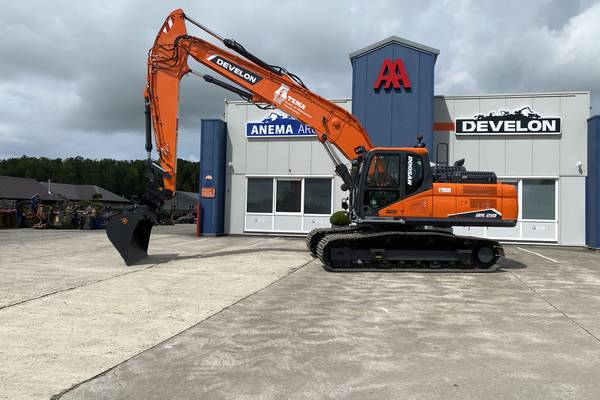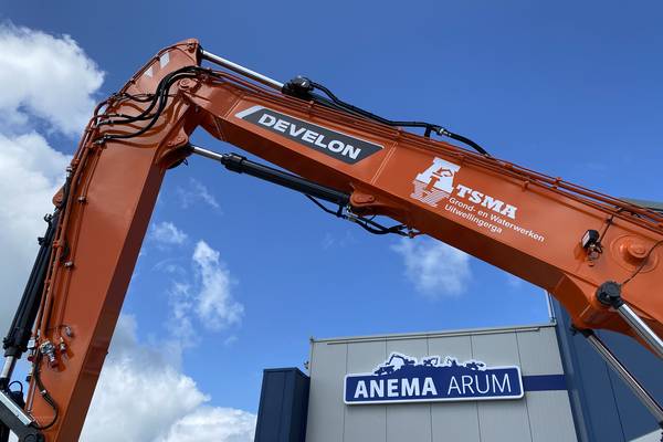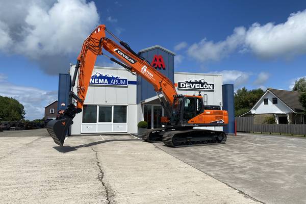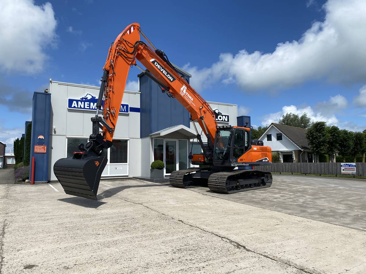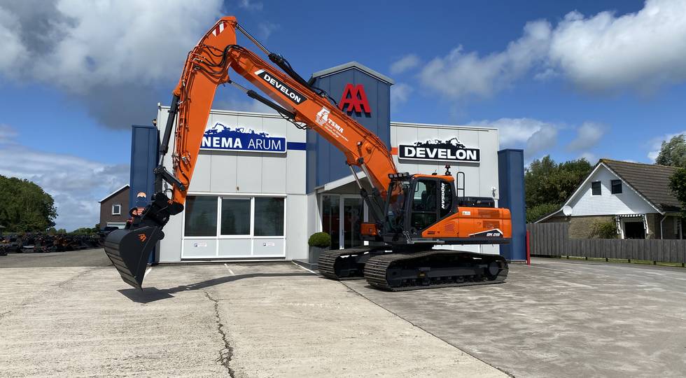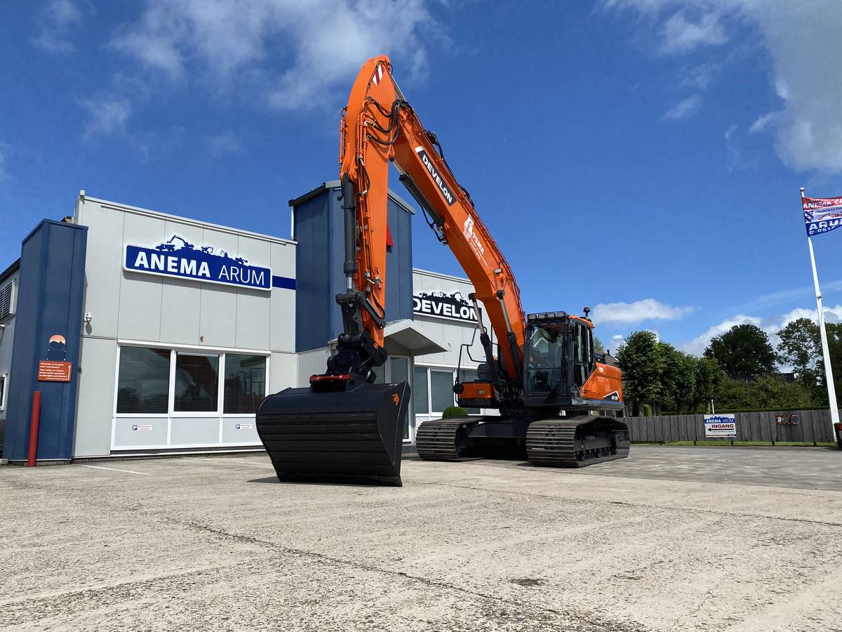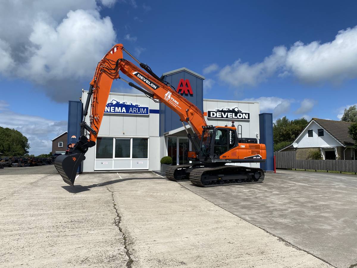 Een nieuwe Develon DX225LC-7, is net voor de bouwvakantie in Uitwellingerga afgeleverd.