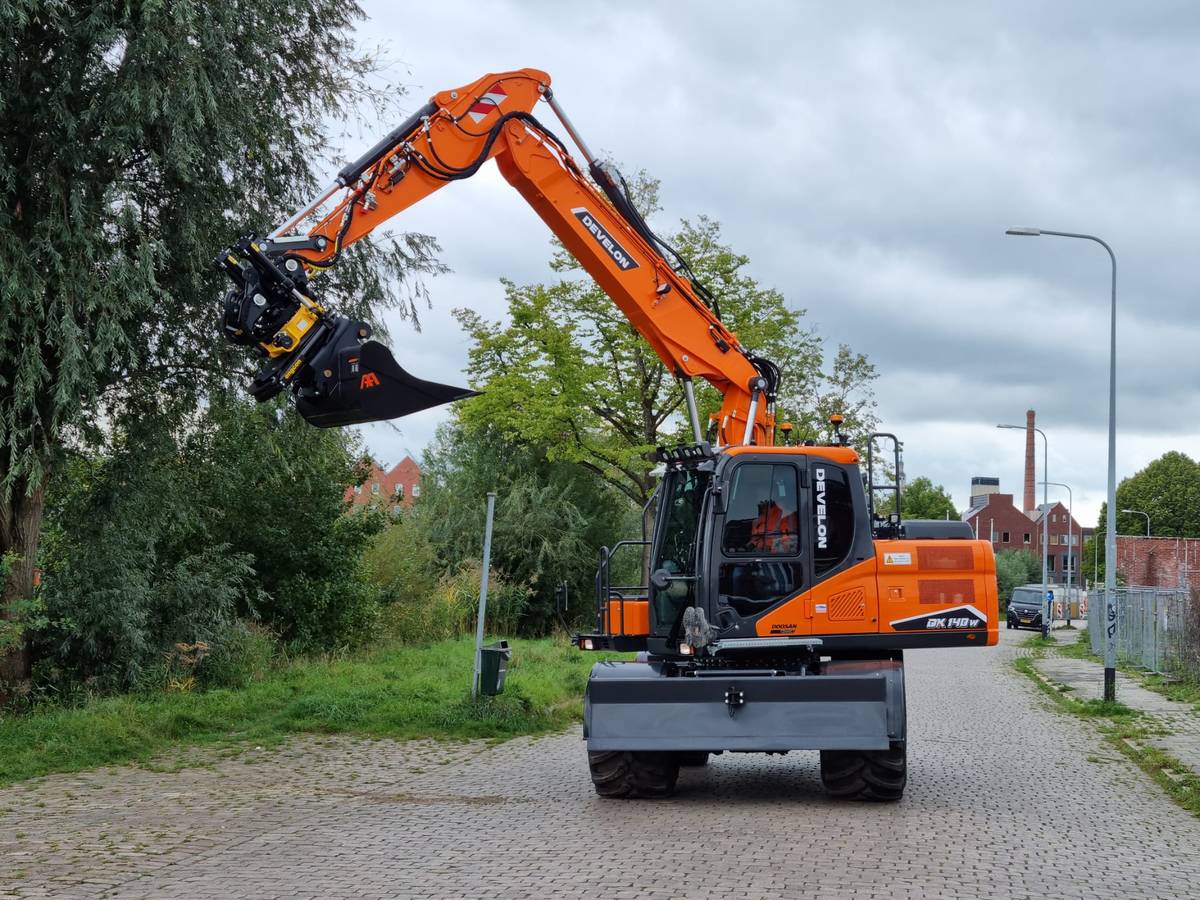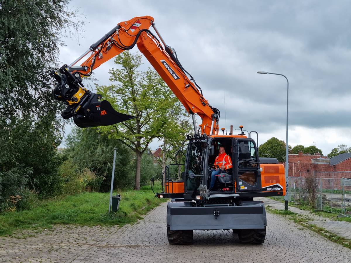 Het loonbedrijf verruilt een Doosan DX140W-5 mobiele graafmachine, met ruim 9500h op de teller, voor de allernieuwste versie uit de Develon -7 serie.