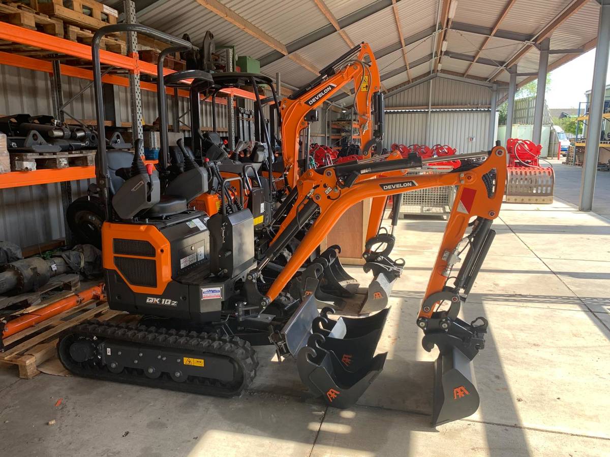 De DX10z-7 is uitgevoerd met een hydraulisch verstelbare onderwagen, die kan variëren van 73 cm tot 110 cm in breedte. Dit maakt de machine bijzonder flexibel en inzetbaar op verschillende terreinen. Daarnaast beschikt de machine over een schuifblad (73-110 cm), servo-bediening en een extra hydraulische functie. Veiligheid en gebruiksgemak worden vergroot door de valbeugel.