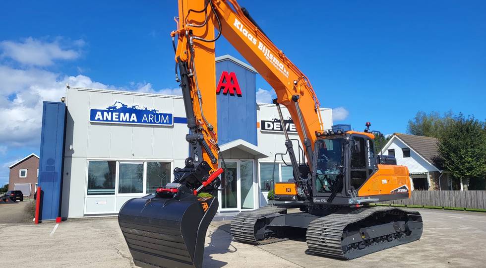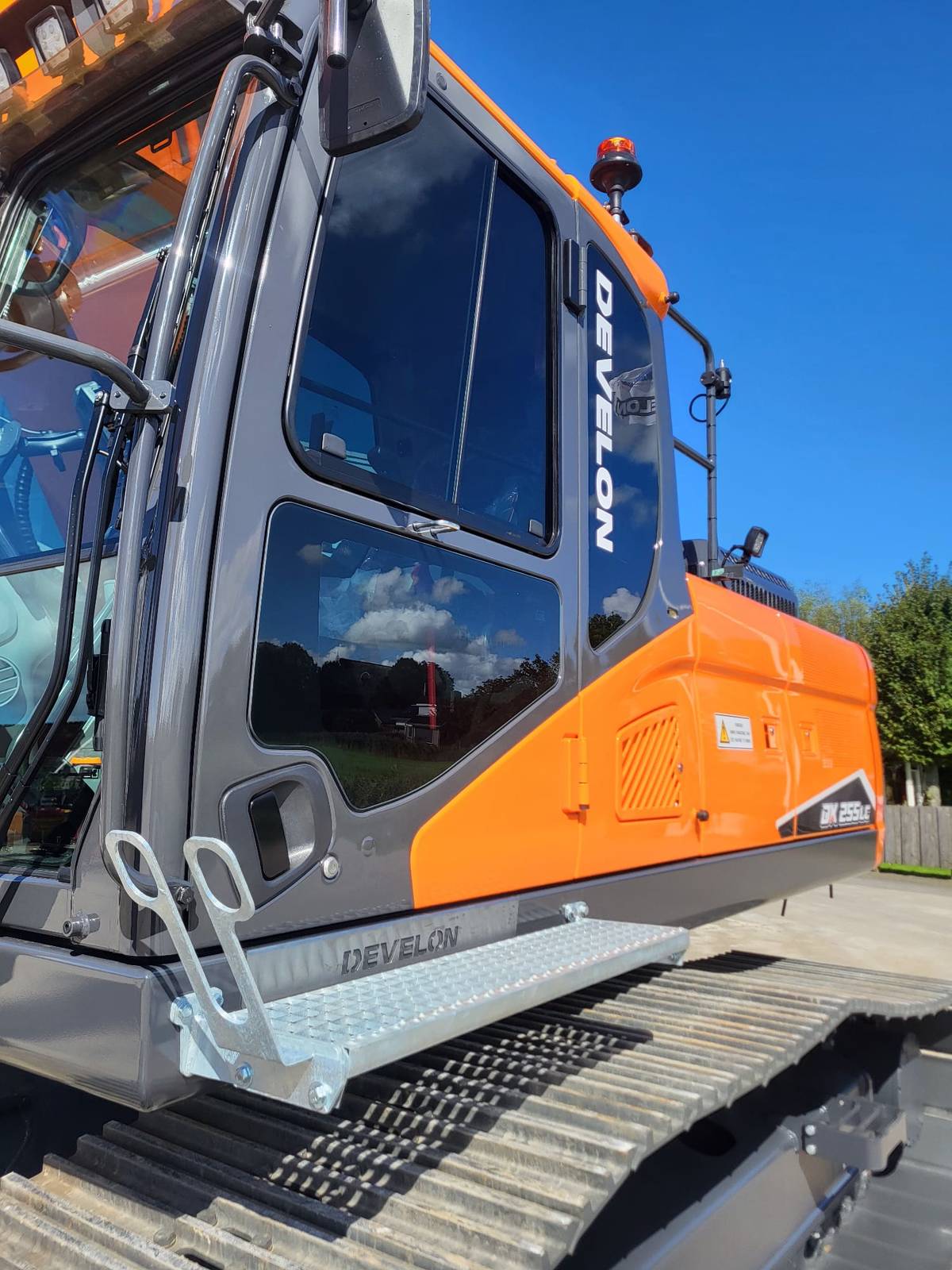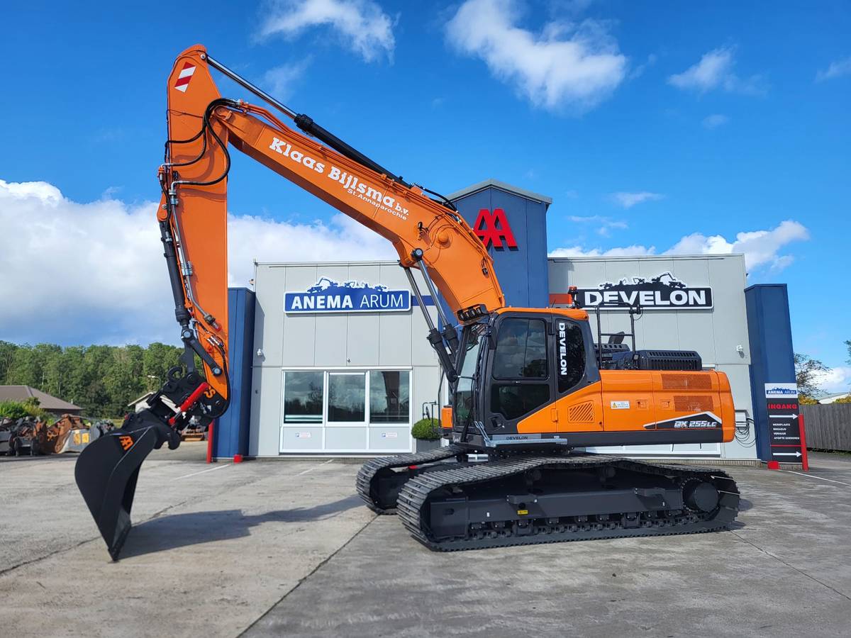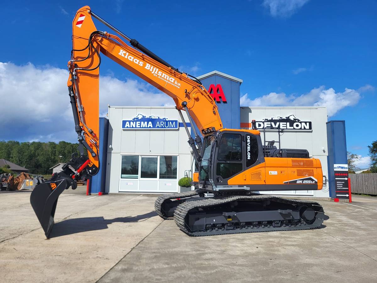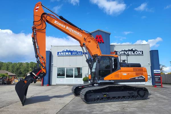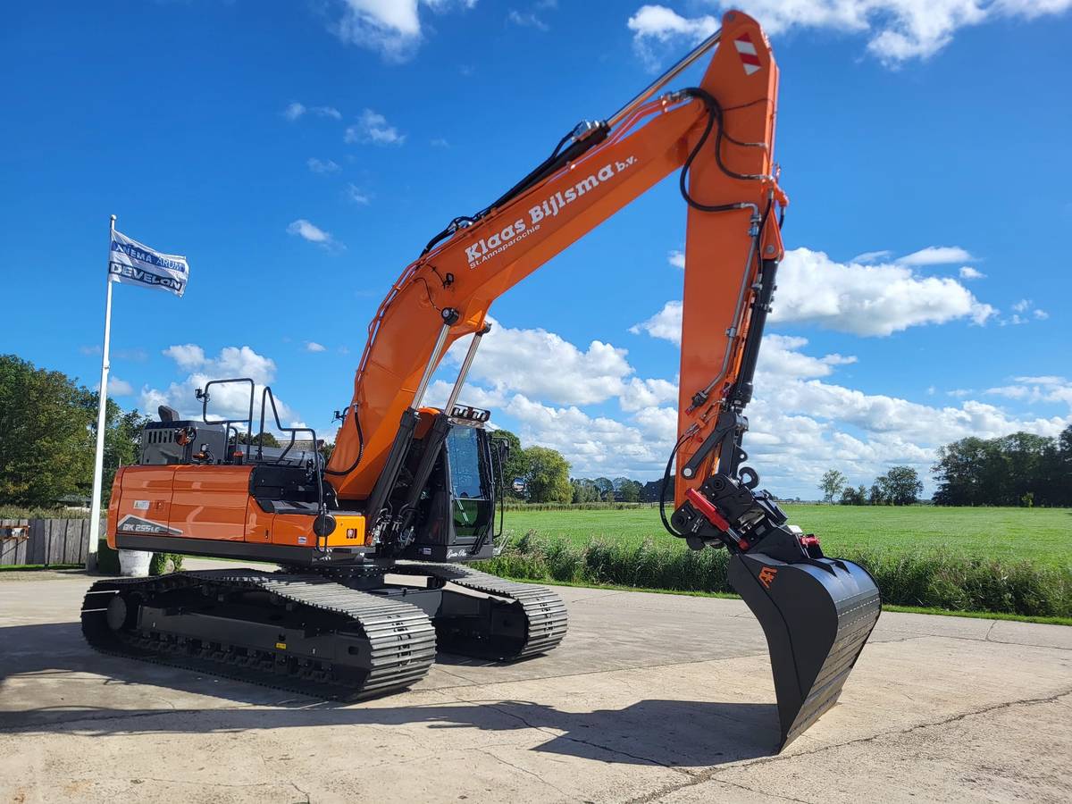 Met deze geavanceerde Develon DX255LC-7 is Klaas Bijlsma uitstekend uitgerust voor zware graafwerkzaamheden, waarbij zowel kracht, precisie als comfort centraal staan.
