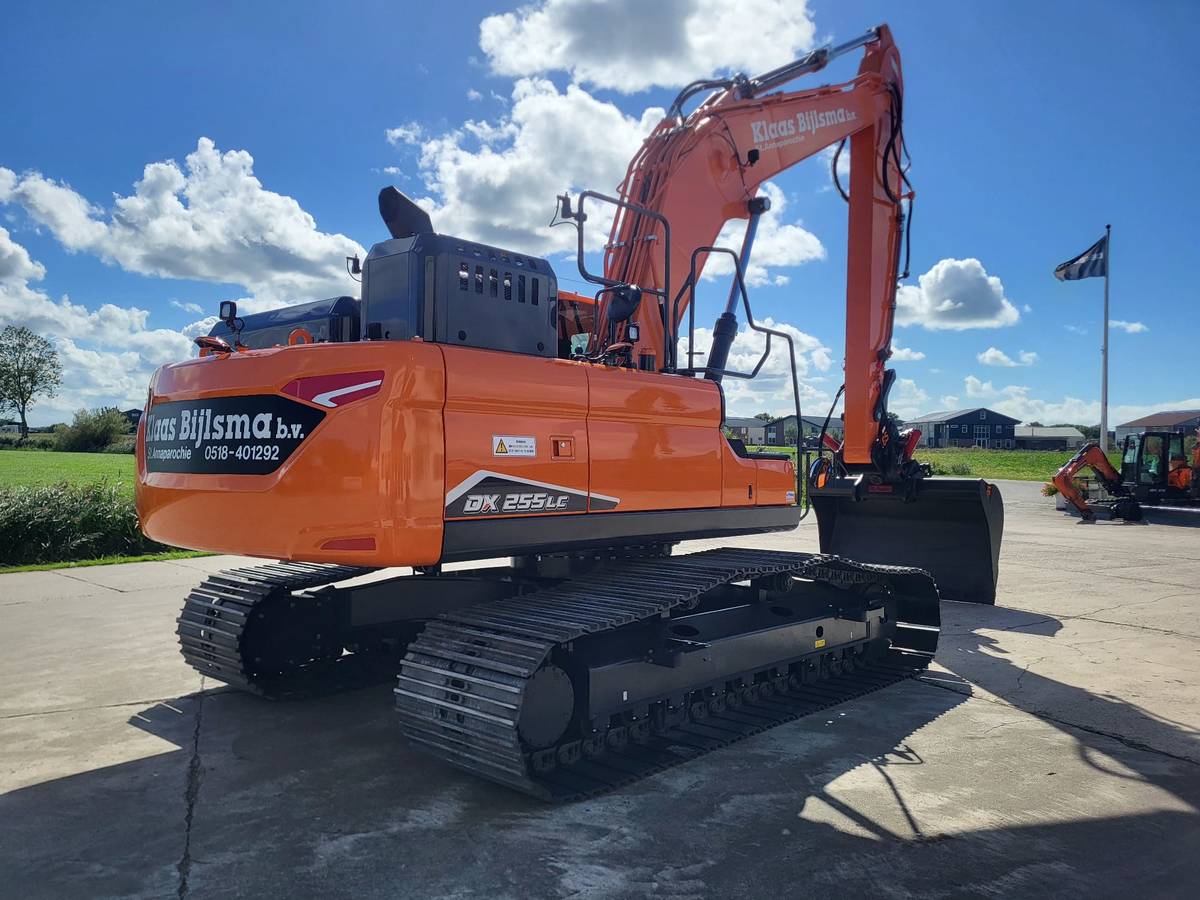 De DX255LC-7 is standaard uitgevoerd met een Develon DL06V 6-cilinder dieselmotor (Stage V), een mono-giek van 590 cm en een steel van 300 cm. De machine beschikt daarnaast over een hamer- en rotatiefunctie, proportionele bediening, brede rupsplaten van 90 cm, en extra LED-werkverlichting voor optimale zichtbaarheid. De cabine is voorzien van een luchtgeveerde stoel met verwarming en koeling, climate control, een 8" monitor en camera, en een geavanceerd brandstofmanagementsysteem (DFM), wat zorgt voor comfort en efficiëntie tijdens lange werkdagen.