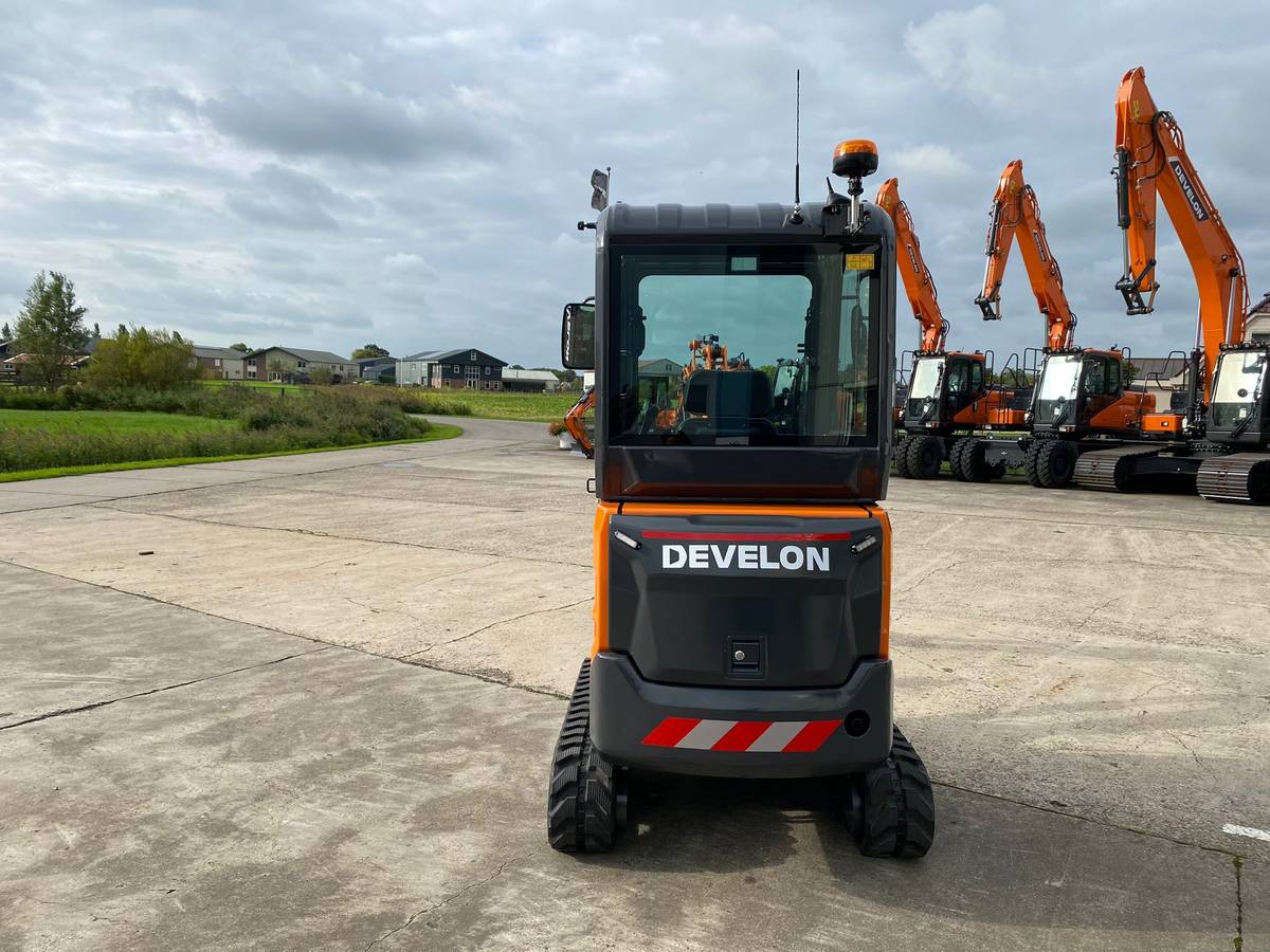 De DX19-7 is voorzien van flitslampen voor betere zichtbaarheid en veiligheid op de werkplaats. Daarnaast is de machine uitgerust met een complete bakkenset, waardoor hij direct inzetbaar is voor verschillende soorten grondwerk. Een traanplaat op de lepelsteel biedt extra bescherming en duurzaamheid tijdens intensieve werkzaamheden.