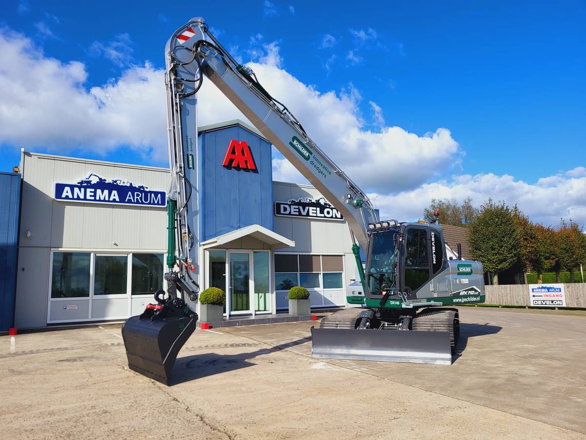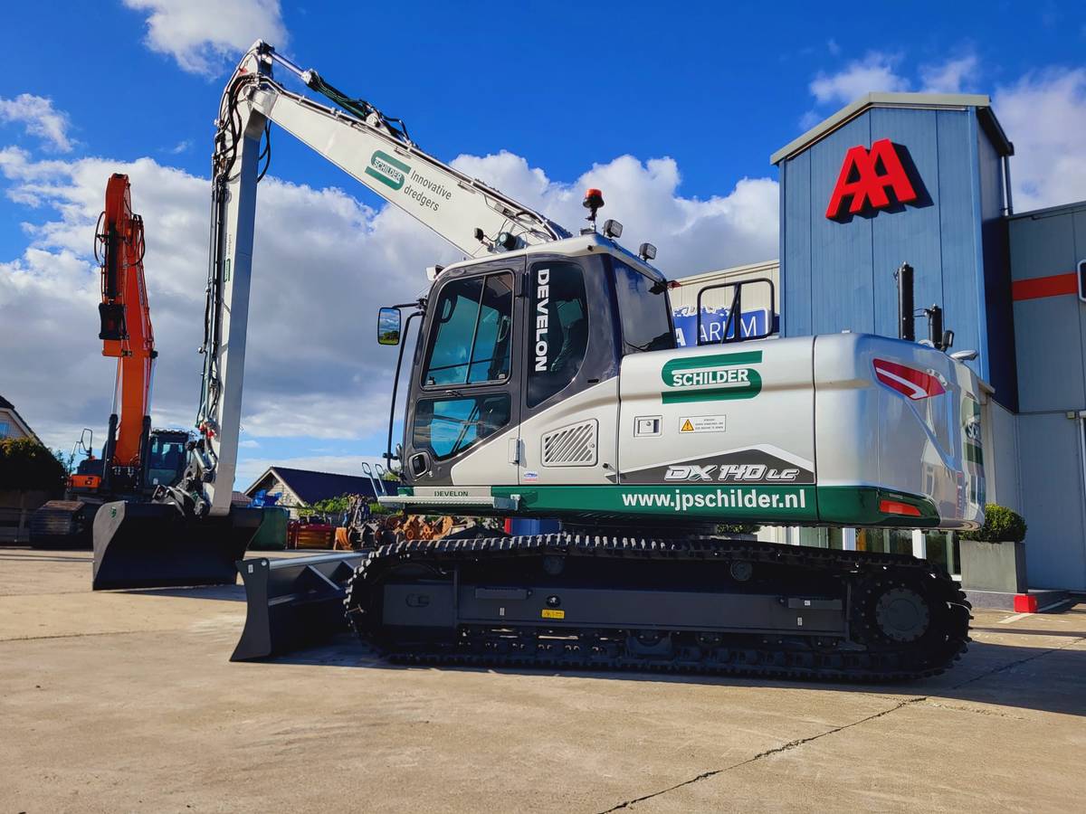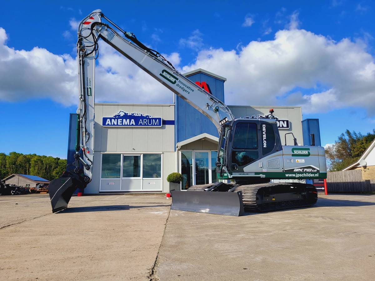 Met de aanschaf van de Develon DX140LC-7K versterkt Schilder haar positie als voorloper in duurzame waterbouw en baggerwerken. Deze investering draagt bij aan het optimaliseren van hun werkzaamheden en het leveren van maatwerkoplossingen voor uiteenlopende projecten, van waterbodemsaneringen tot oeverconstructies.