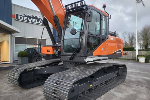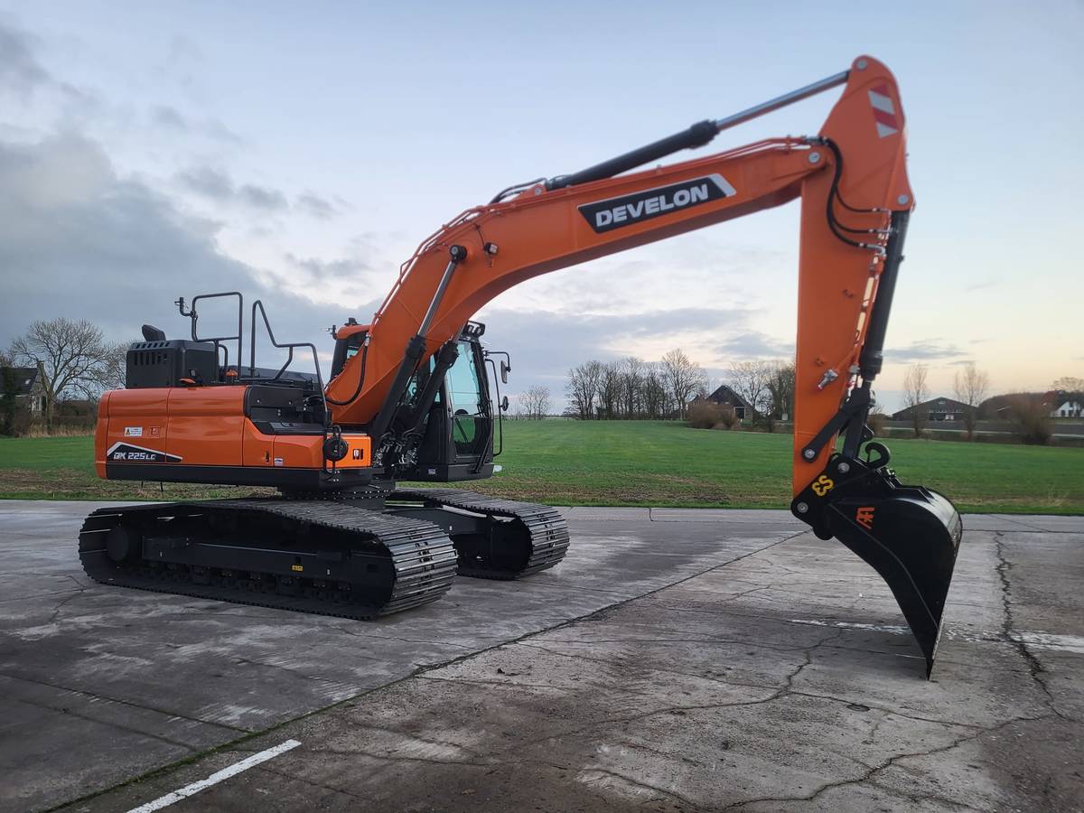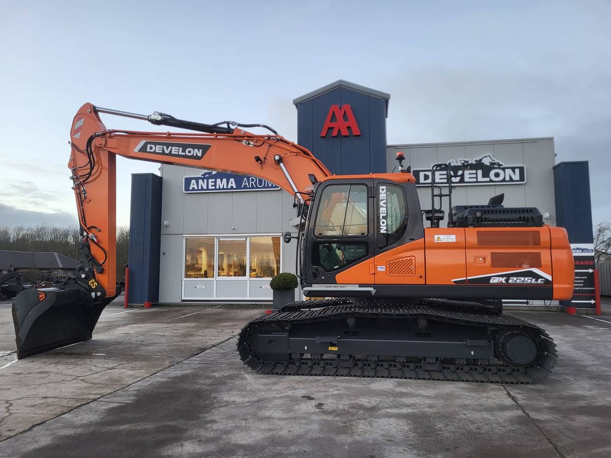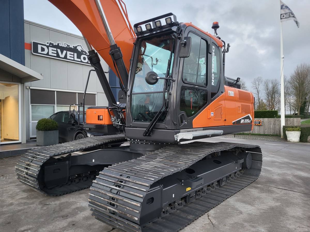 De Develon DX225LC-7 staat bekend om zijn uitstekende prestaties in diverse omstandigheden. Dankzij de geavanceerde hydraulische functies, brede rupsen en de Topcon GPS-voorbereiding is de machine perfect geschikt voor uiteenlopende toepassingen in de GWW- en agrarische sector. De machine is verder uitgerust met zowel zij- als achtercamera’s voor een verbeterd zicht en veiligheid op de werkplek. De geblindeerde ramen bieden extra privacy en bescherming, terwijl de robuuste treeplank zorgt voor gemakkelijke en veilige toegang tot de cabine.