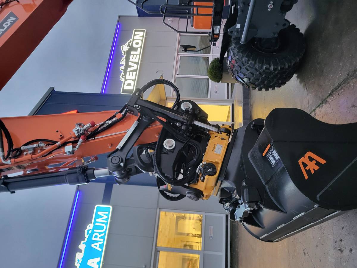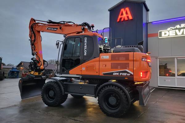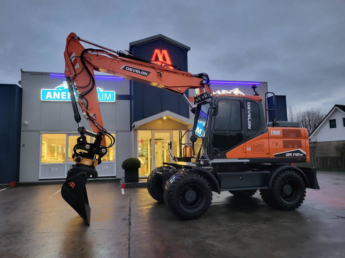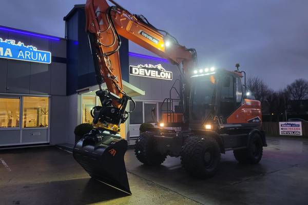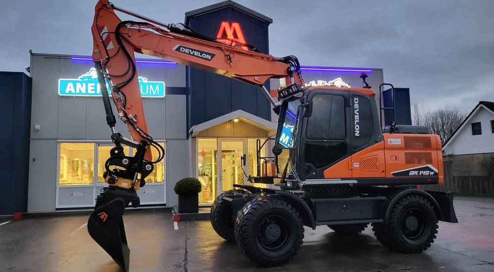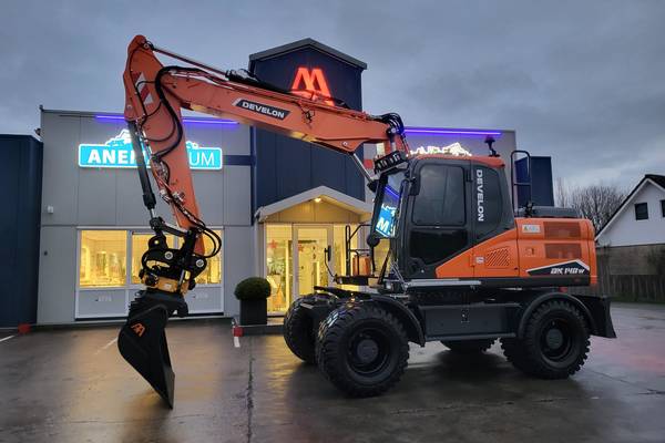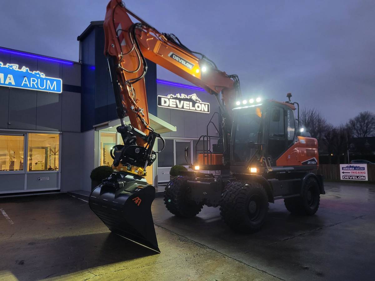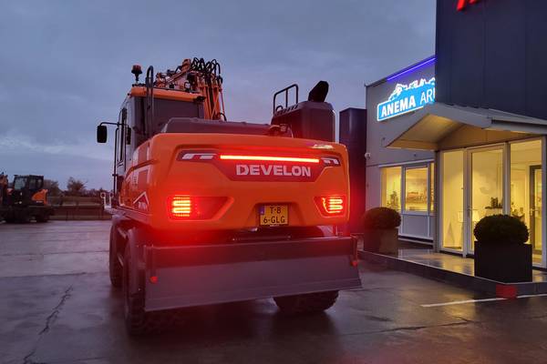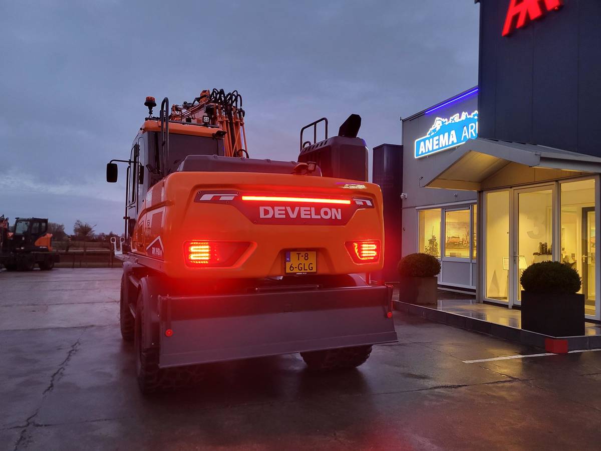 De standaard machine: Develon DL06 6-cilinder commonrail dieselmotor Tier V, motorinhoud 5890cm3, vermogen 137pk/102kW, pompopbrengst 2x 170ltr., Standaard uitvoering met hydr. verstelgiek, steel 250cm, slangbreukbeveiliging, hamer/ rotatiefunctie, proportionele bediening van extra functies, schuifblad, opbergkist op onderwagen, dieselvulpomp, extra LED-werklampen, luxe stoel luchtgeveerd met verwarming koeling , zij- en achtercamera, DAB+ radio met Bluetooth en handsfree bellen, zwaailamp, climate control, Fleet Management.