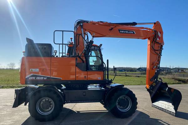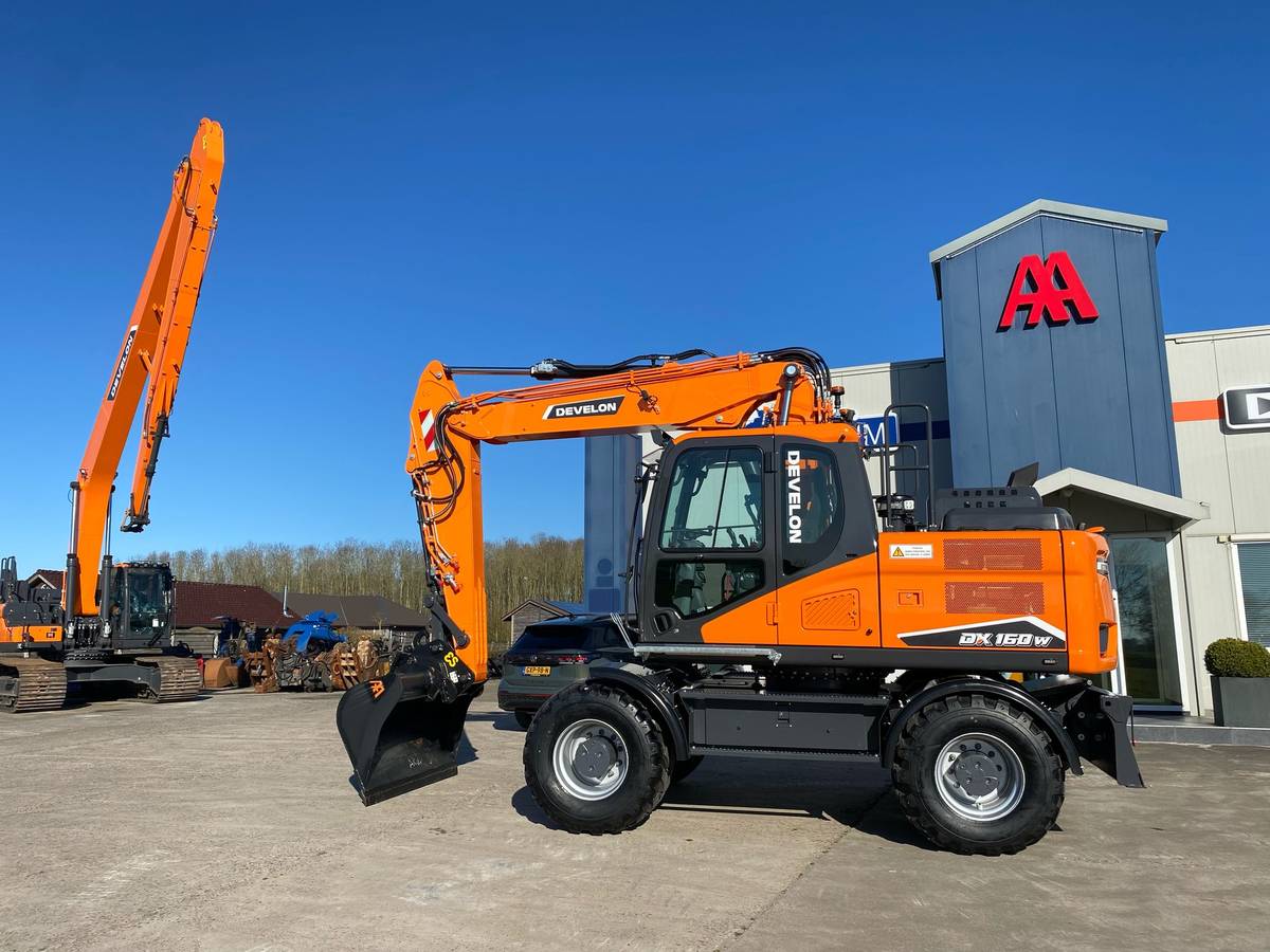 De Develon DX160W-7 staat bekend om zijn robuuste prestaties en veelzijdigheid. De machine is uitgerust met een krachtige Develon DL06 6-cilinder dieselmotor die voldoet aan de Stage V-emissienormen, wat zorgt voor zowel kracht als milieuvriendelijkheid. Het eigen gewicht van de graafmachine bedraagt circa 16.500 kg, wat bijdraagt aan stabiliteit tijdens diverse werkzaamheden.