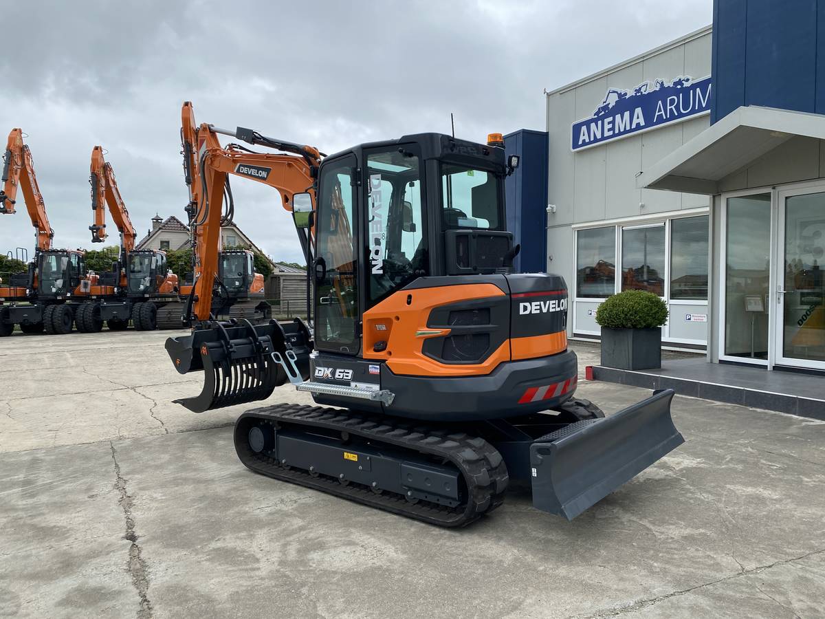 Met een eigen gewicht van circa 6.218 kg en een breedte van 198 cm is de DX63-7 wendbaar genoeg voor stedelijke omgevingen, maar ook krachtig genoeg voor zwaardere graafwerkzaamheden. De machine wordt aangedreven door een Develon D24 dieselmotor (65 pk) die voldoet aan de Stage V-emissienorm.