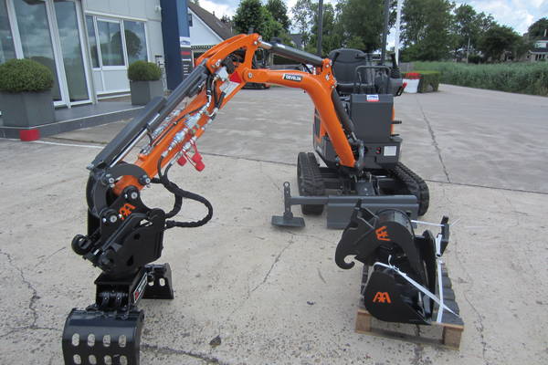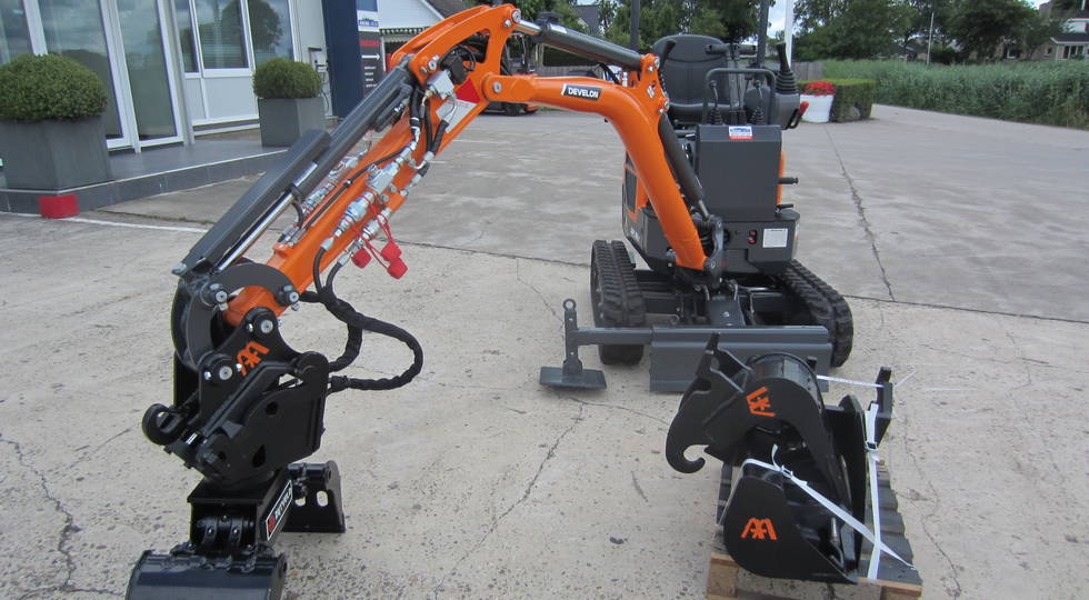 - Drie graafbakken, waaronder een dieplepel met aangepaste ophanging en tanden