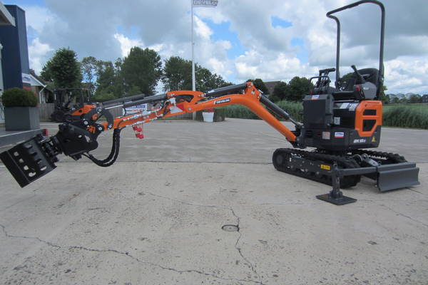 Monumenta Graveniers heeft recent haar machinepark versterkt met de Develon DX10Z-7, een ultracompacte minigraver die speciaal is geselecteerd vanwege zijn precisie, flexibiliteit en inzetbaarheid op kwetsbare of moeilijk toegankelijke locaties. Ideaal voor monumentaal werk en restauratieprojecten. Met een eigen gewicht van circa 1.165 kg en een breedte van slechts 73 cm is de DX10Z-7 ideaal voor werk op historische locaties, in binnenplaatsen of in nauwe doorgangen waar grotere machines niet kunnen komen. De Kubota 3-cilinder dieselmotor (700 cm³) levert 7,6 kW vermogen, ondersteund door een hydraulische pompopbrengst van 2x10,4 liter per minuut. De machine rijdt met een snelheid van circa 2,1 tot 3,1 km/h, heeft een rupsbreedte van 18 cm en beschikt over een hydraulisch verstelbare onderwagen die verbreed kan worden tot 110 cm, wat zorgt voor extra stabiliteit tijdens het werk.