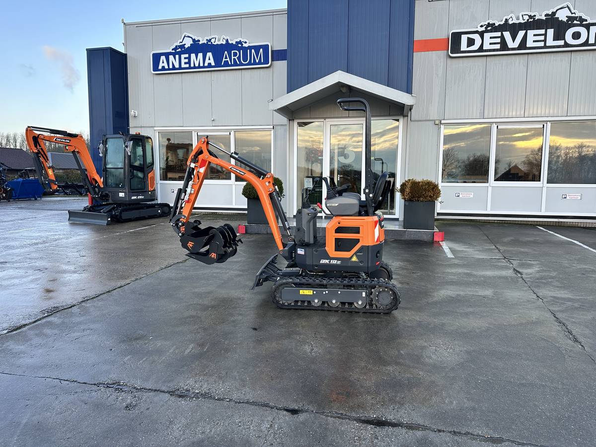Met een eigen gewicht van ca. 1.165 kg en een betrouwbare Kubota 3-cilinder dieselmotor (700 cm³, 7,6 kW), biedt de DX10Z-7 uitstekende efficiëntie en soepel hydraulisch werk dankzij de dubbele pompopbrengst van 2 × 10,4 liter/minuut. De rijsnelheid van 2,1 tot 3,1 km/u maakt verplaatsing eenvoudig, zowel binnen als buiten het werkterrein.